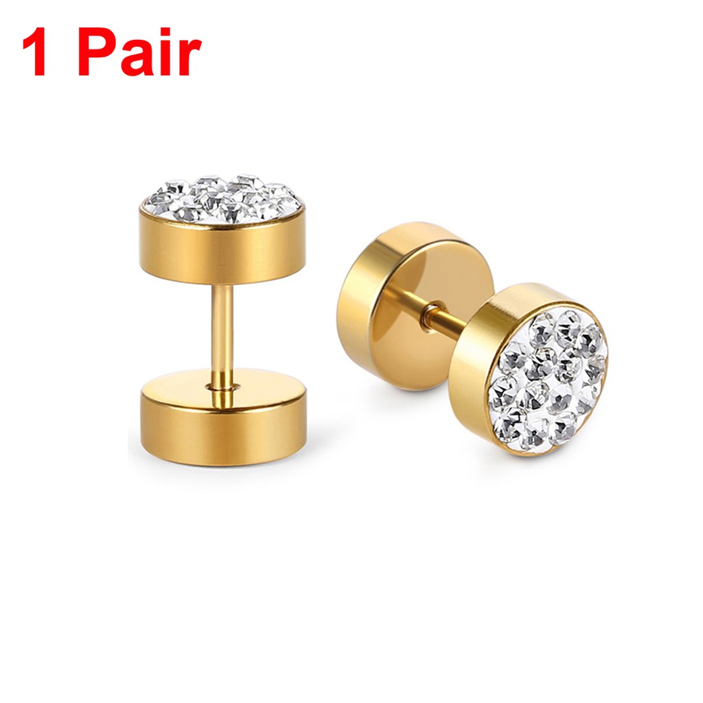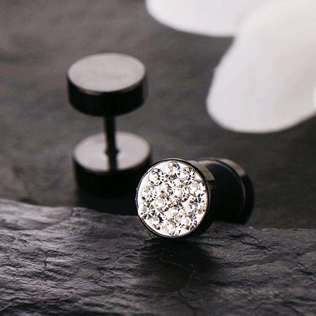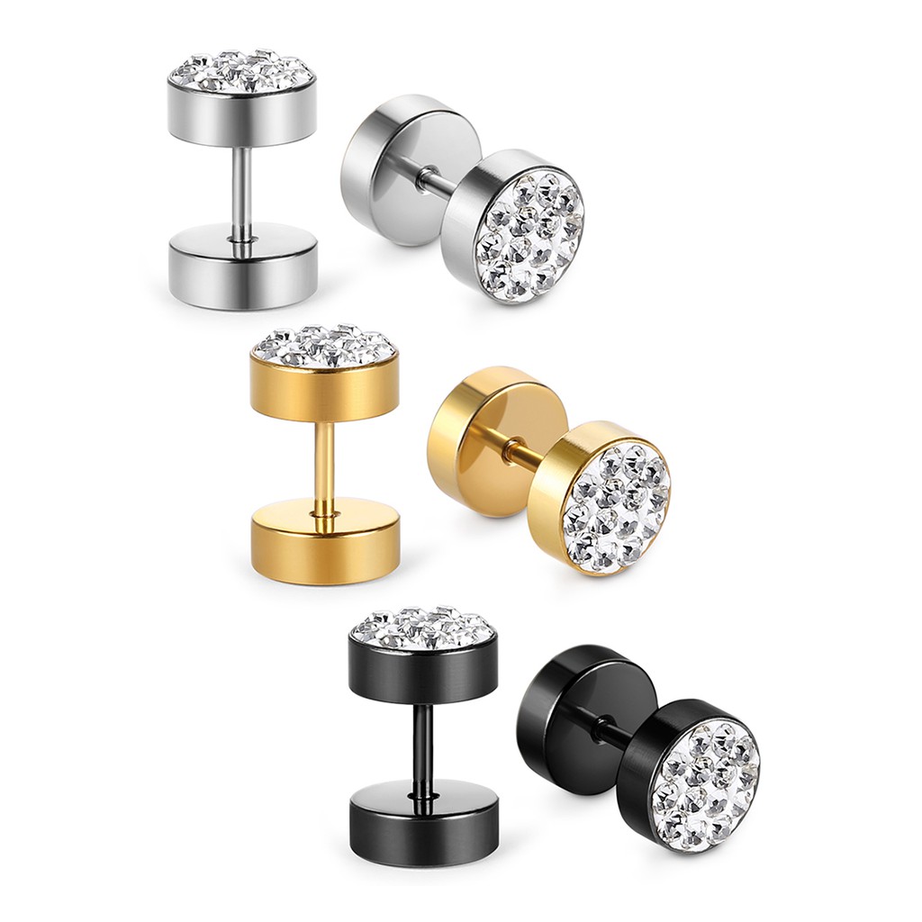 Stainless Steel Mens Earrings Black/Gold/Silver Color Stud Earrings for Boys Czech Crystals Ear Plug Ear Studs Piercing