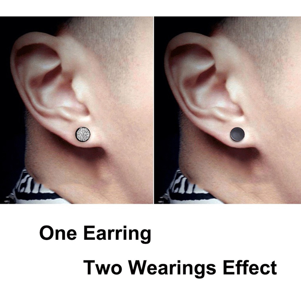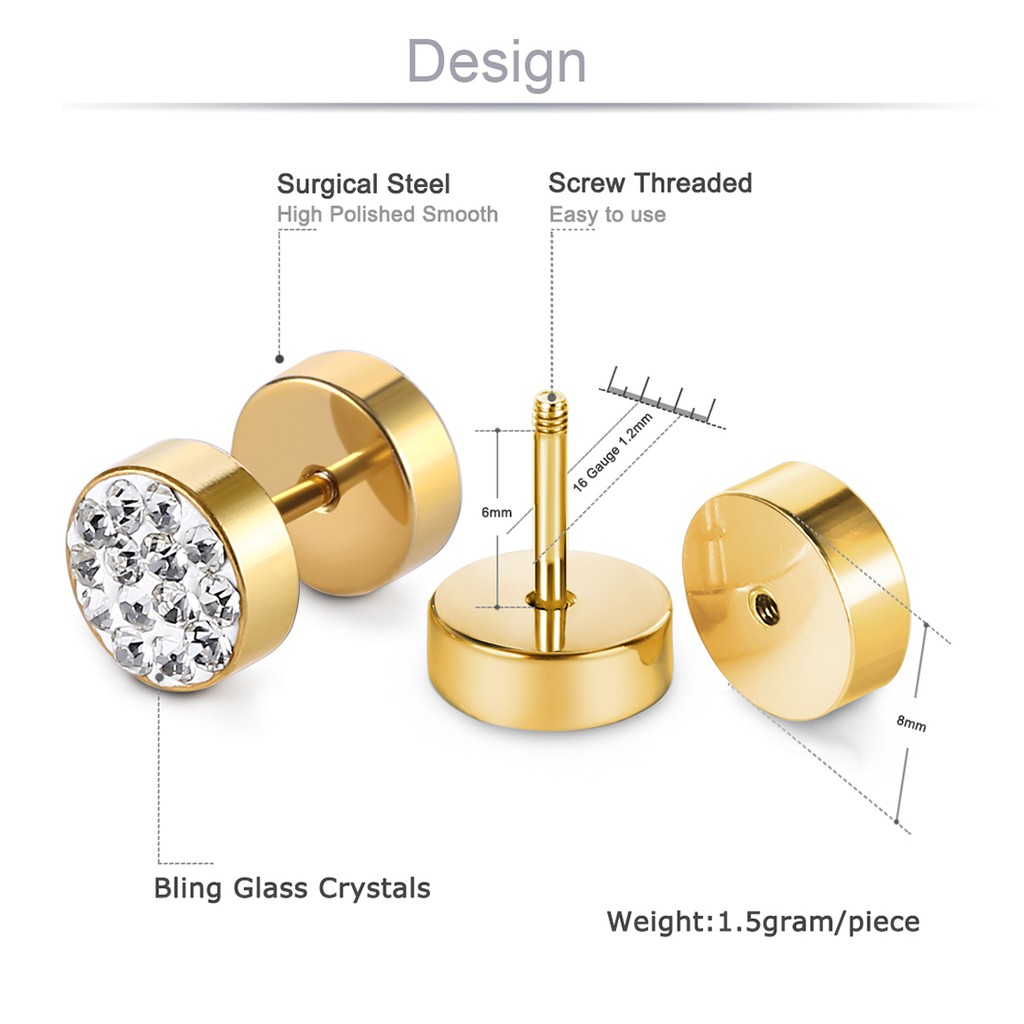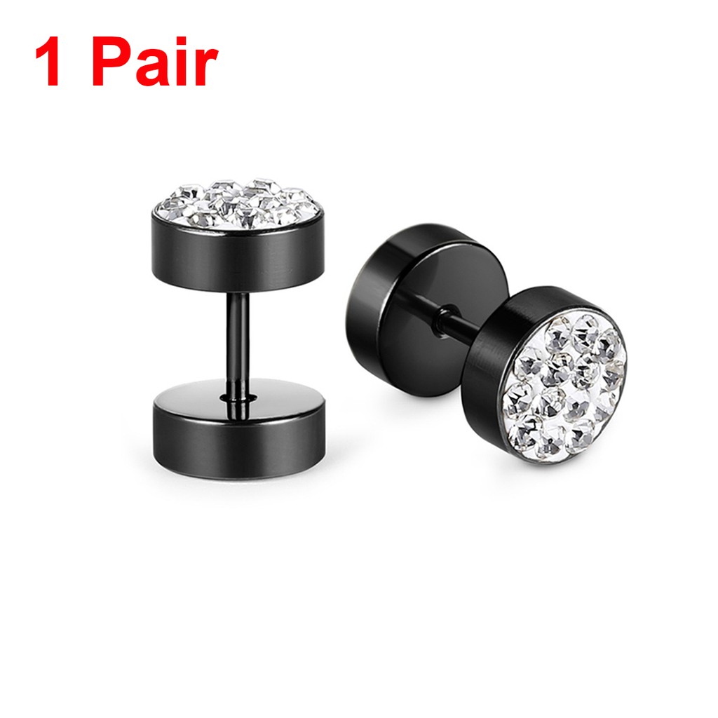 Stainless Steel Mens Earrings Black/Gold/Silver Color Stud Earrings for Boys Czech Crystals Ear Plug Ear Studs Piercing