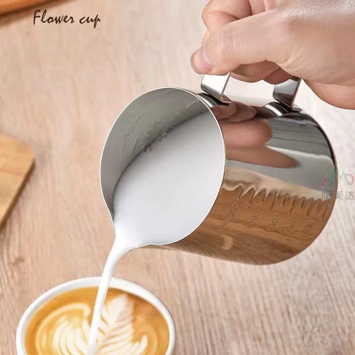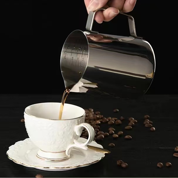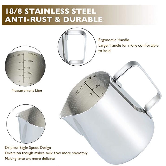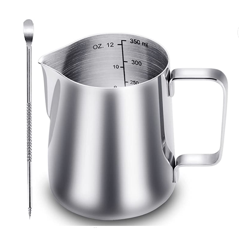 Stainless Steel Milk Frothing Pitcher - 350ml, 600ml & 1000ml with Decorating Pen