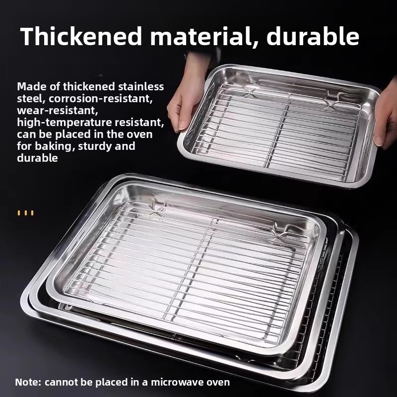 Stainless Steel Oil Drip Tray Strainer Rectangular Frying Skewer Oil Filter Pan Drain Tray Kitchen Grease Strainer Plate Reusable Drip Pan For Cooking Fry Food