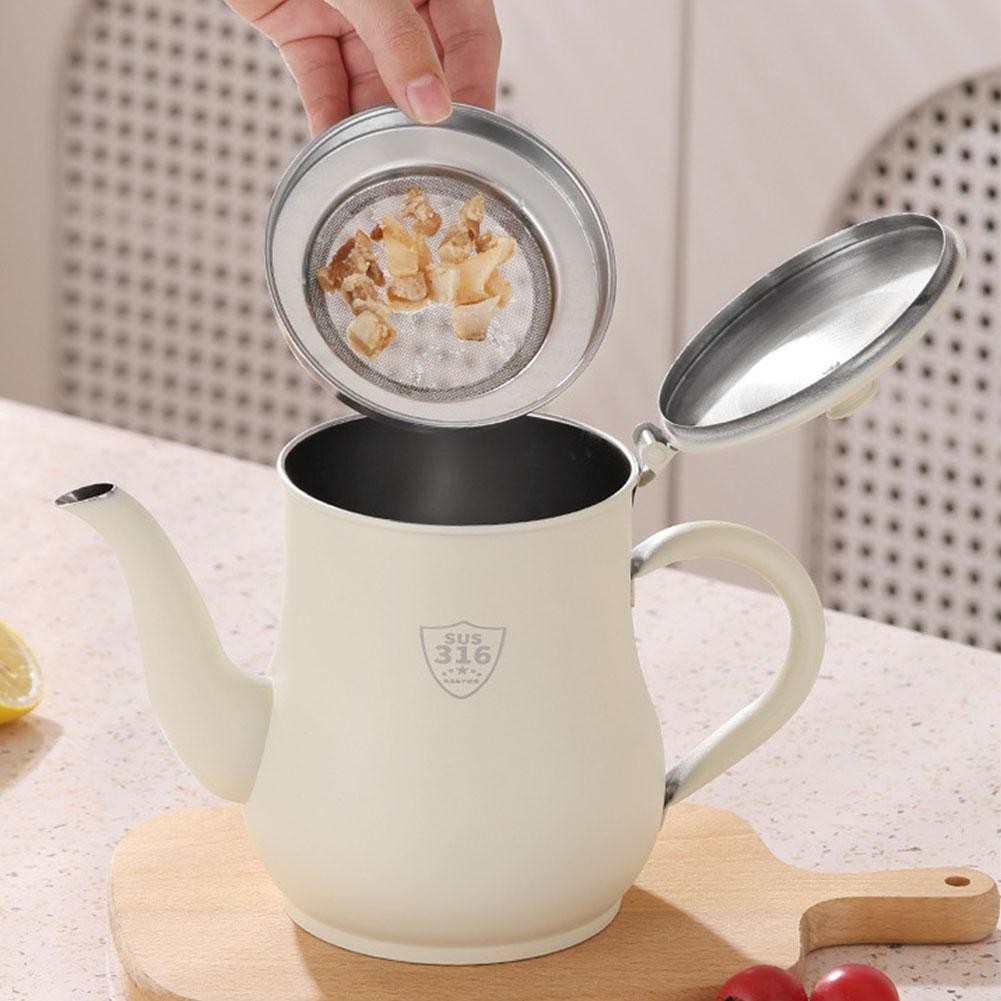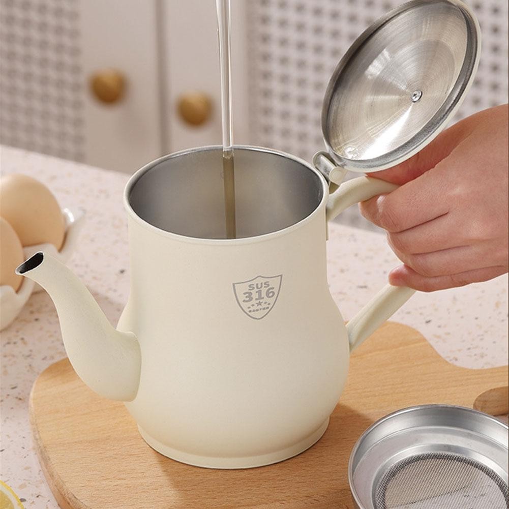 Stainless Steel Oil Pot Kitchen Household With Filter Screen Thickened Oil Storage Tank Oil Drain Pot