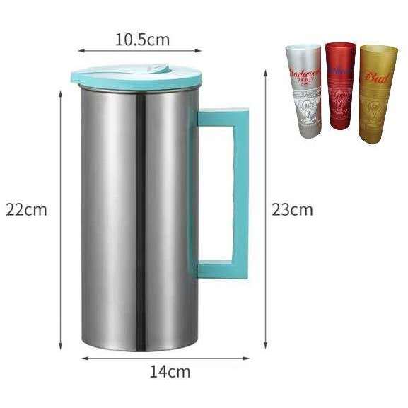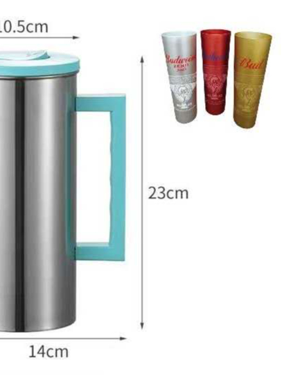 Stainless Steel Pitcher Korean Water Bottle Water Jug for Beverages Juices 1.8L With FREE 3 Baso