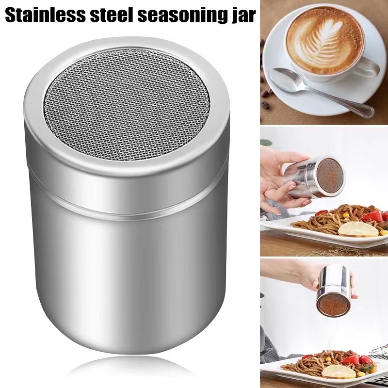 Stainless Steel Powder Shaker Mesh Sifter Sprinkler With Lid For Cocoa Flour Cinnamon Seasoning Cans