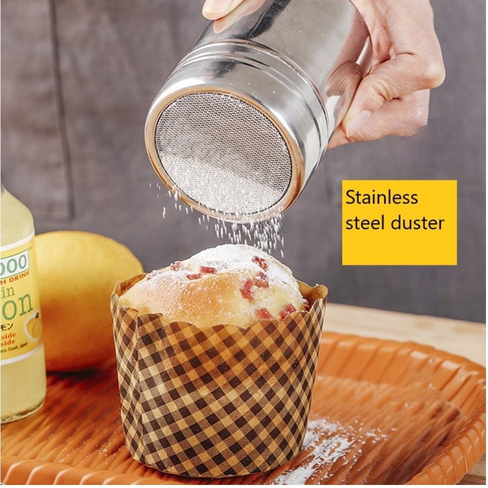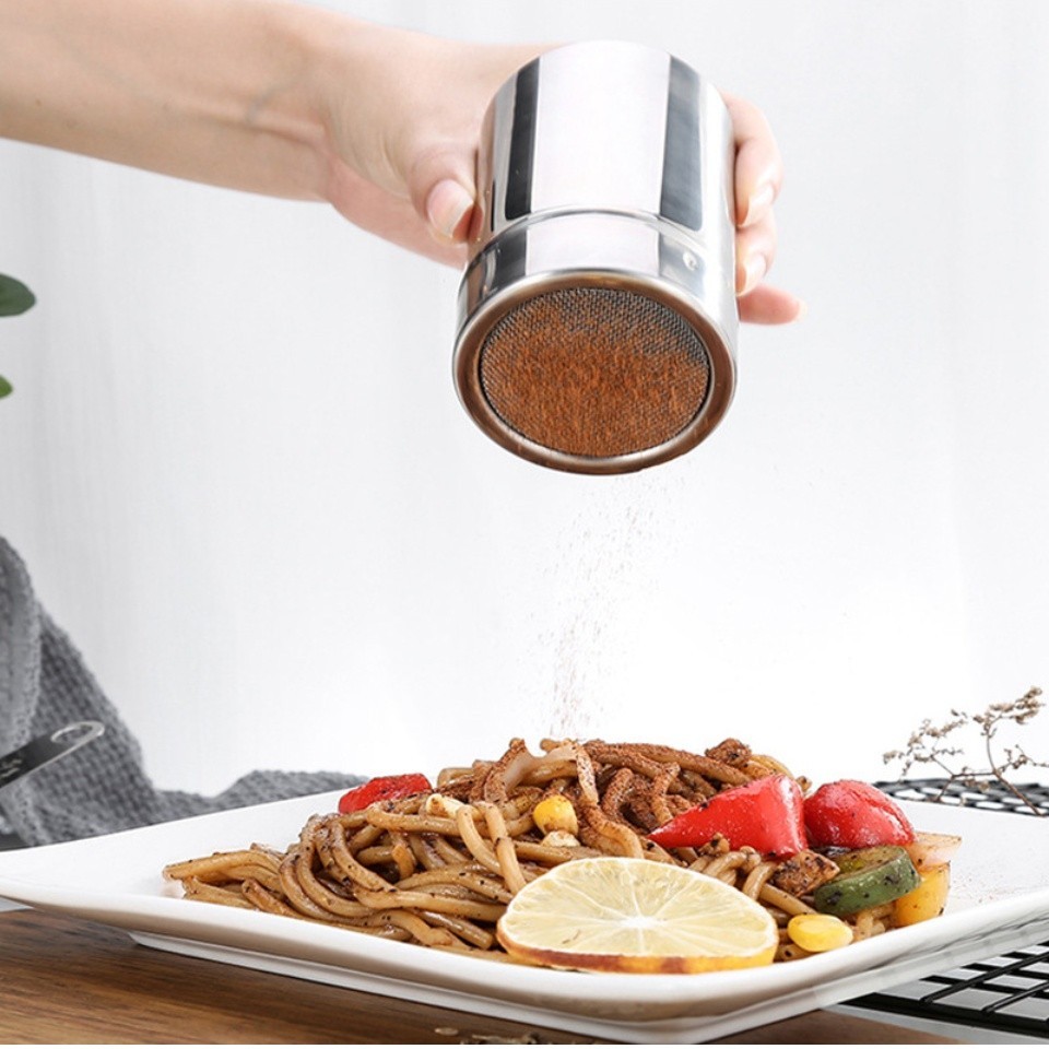 Stainless Steel Powder Shaker Mesh Sifter Sprinkler With Lid For Cocoa Flour Cinnamon Seasoning Cans
