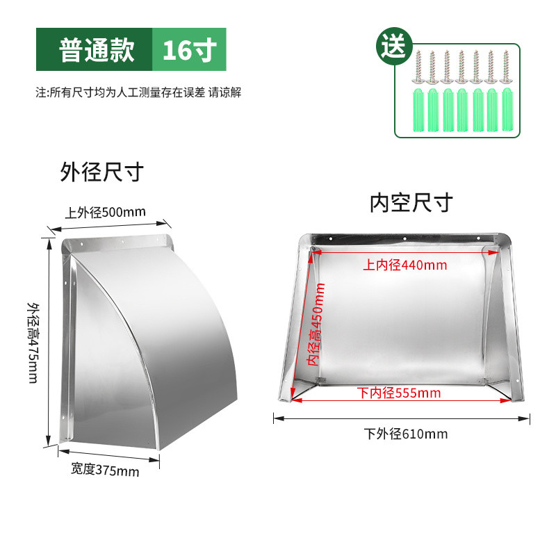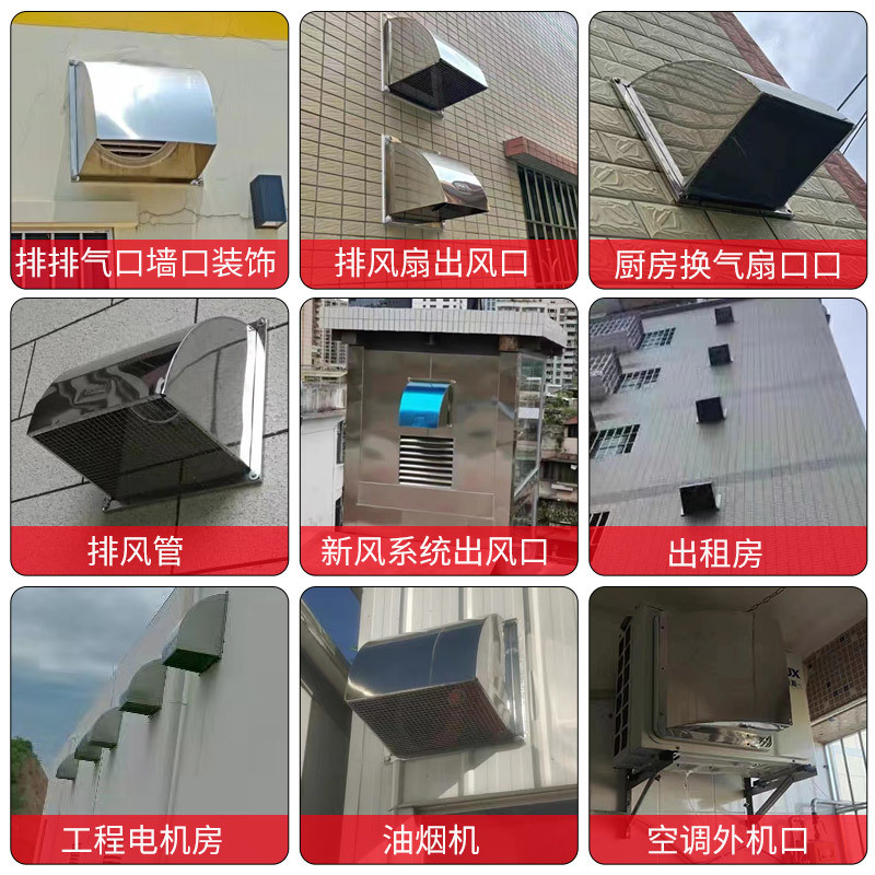 Stainless Steel Rain Cover Range Hood Exhaust Hood Exhaust Fan Protective Cover Exterior Wall Air Outlet Exhaust Hood General Baffle