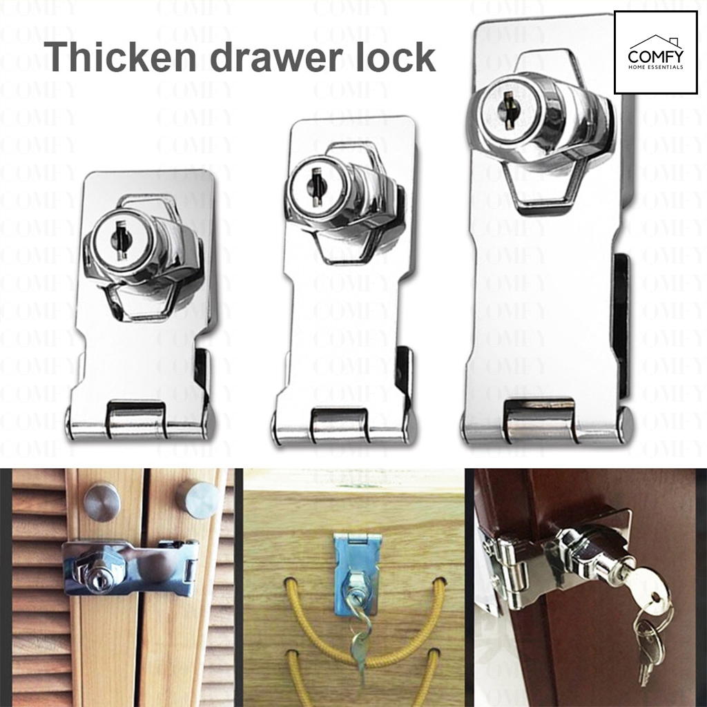 Stainless Steel Self Locking Hasp Latch Cabinet Drawer Door Safety Lock With Key 2.5"/3.5"/4"