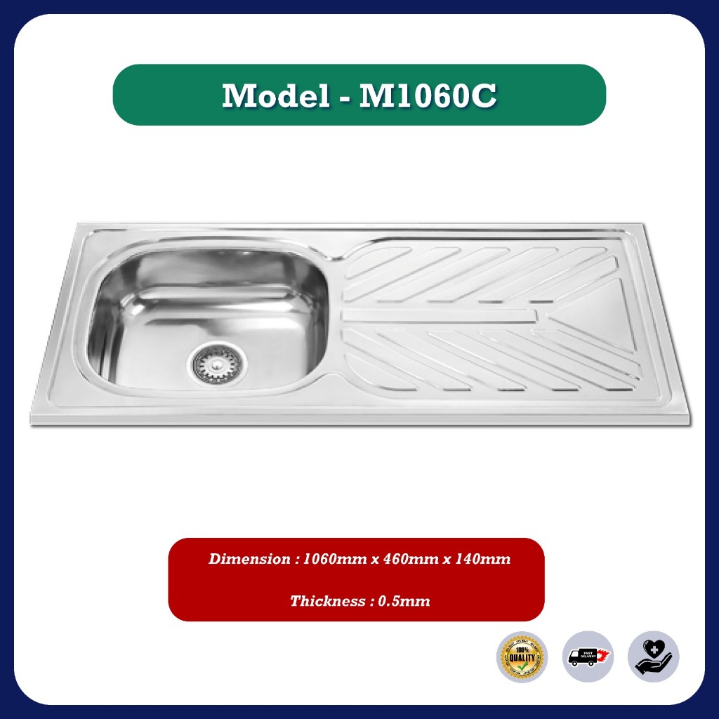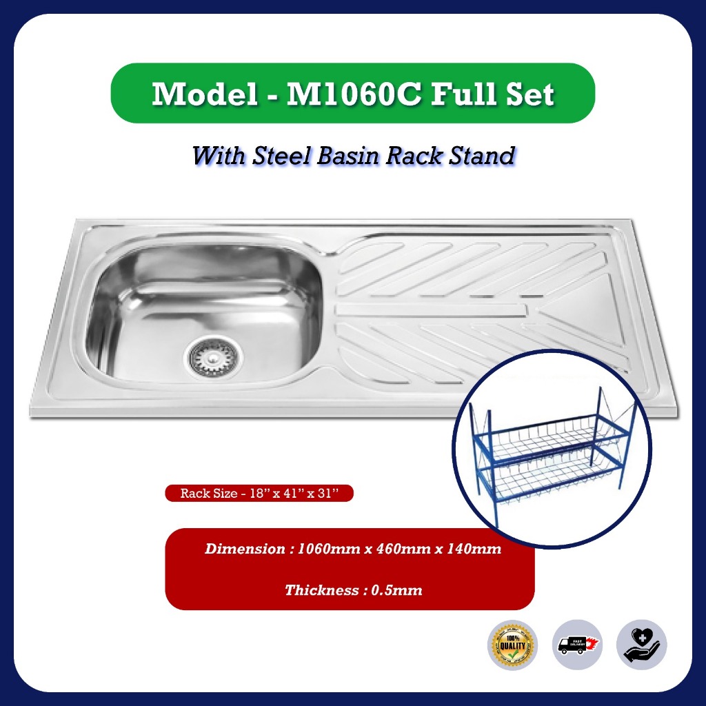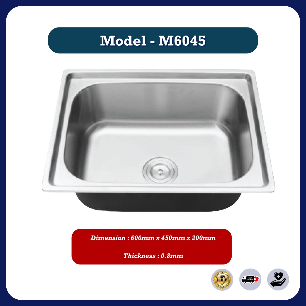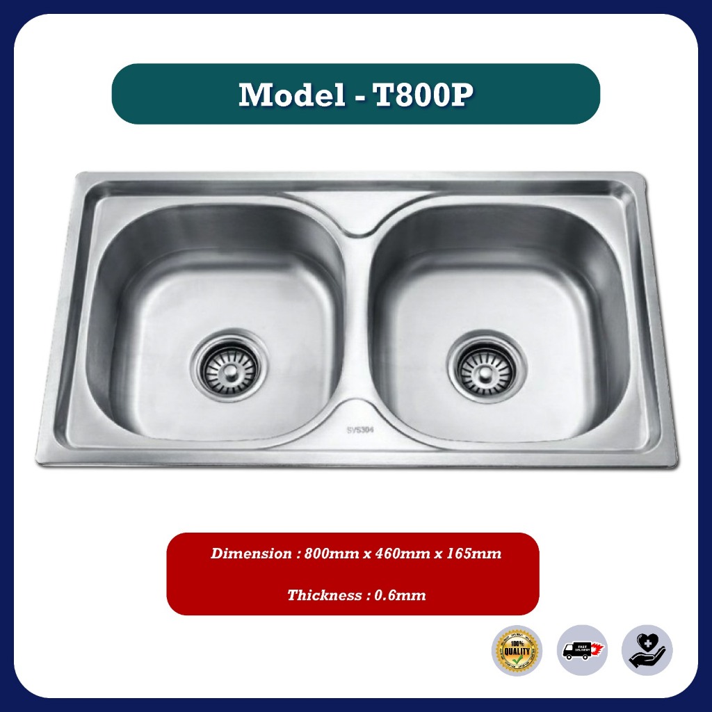 Stainless Steel Single Double Bowl Kitchen Sink Sinki Dapur Top Mount With Basket Waste