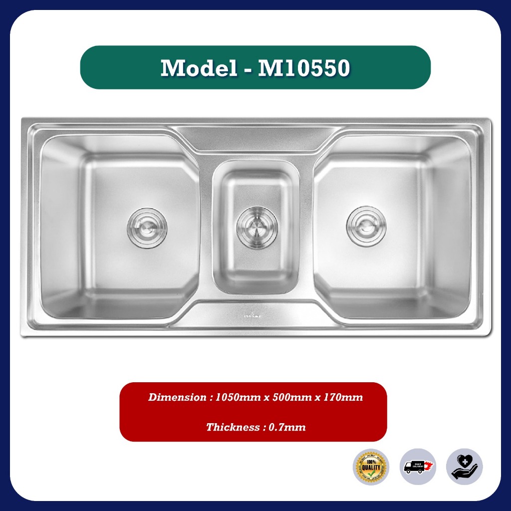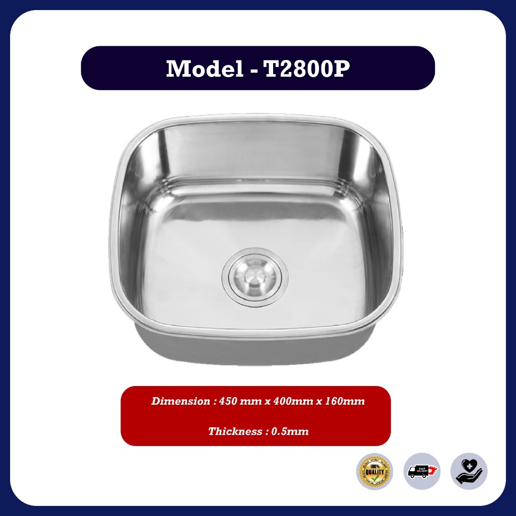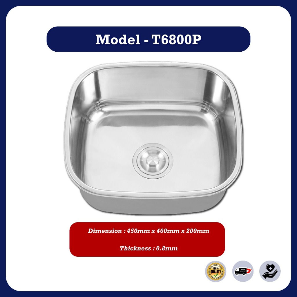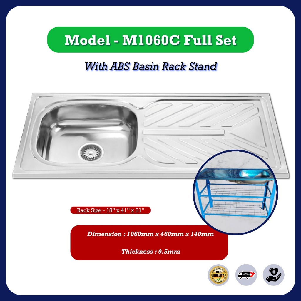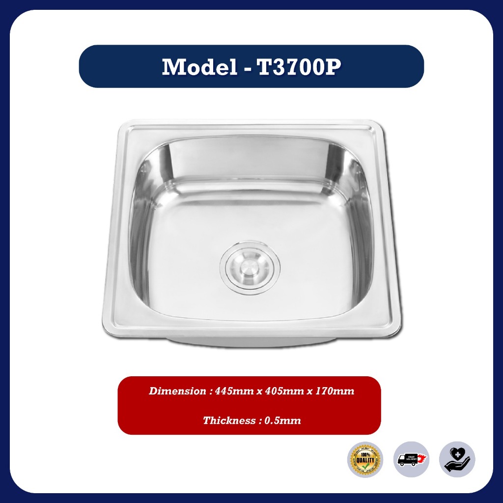 Stainless Steel Single Double Bowl Kitchen Sink Sinki Dapur Top Mount With Basket Waste