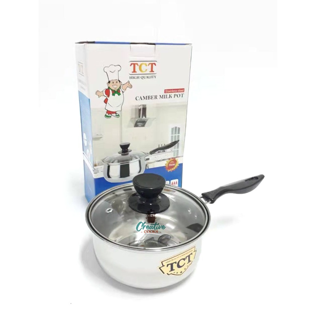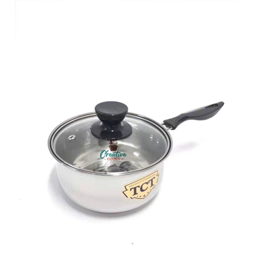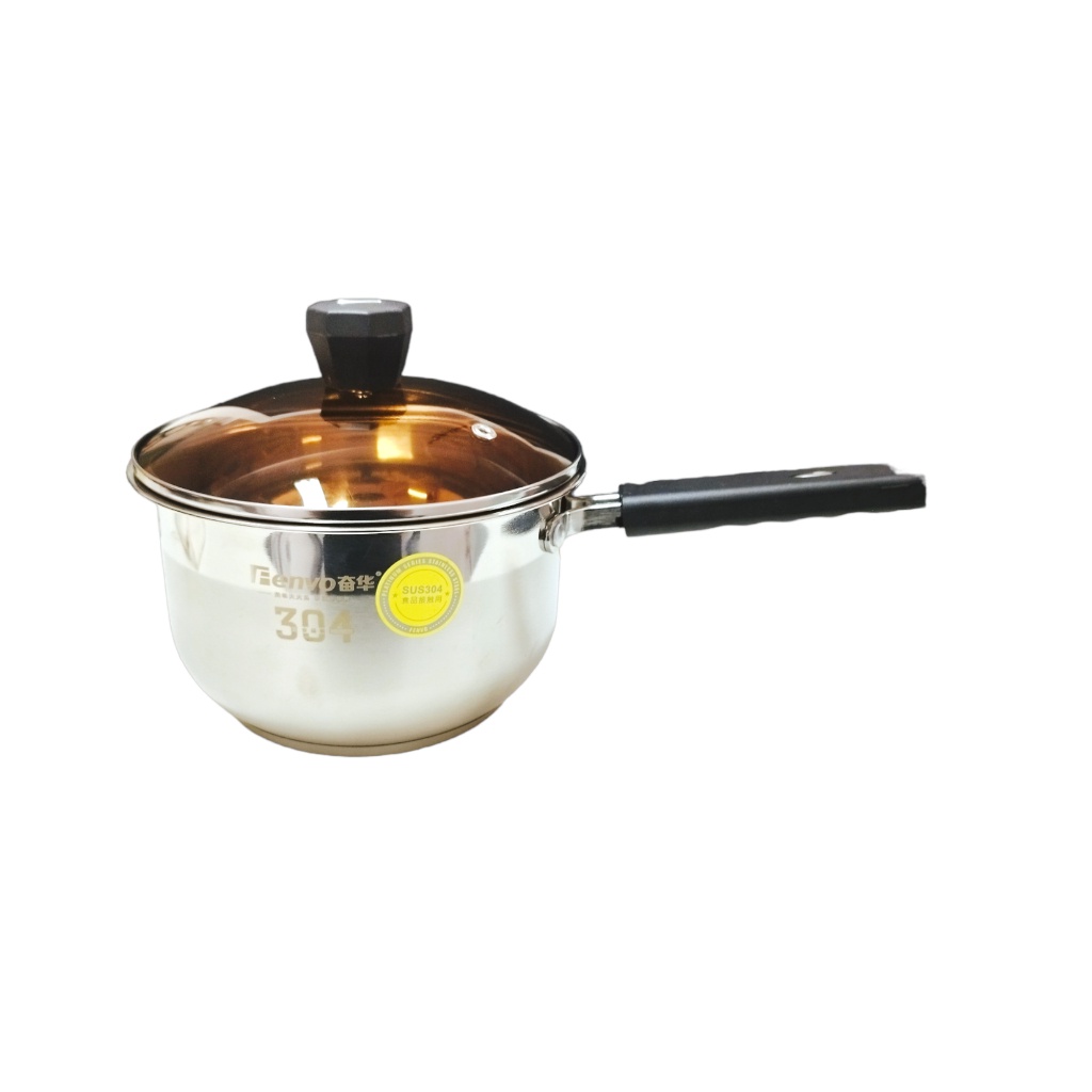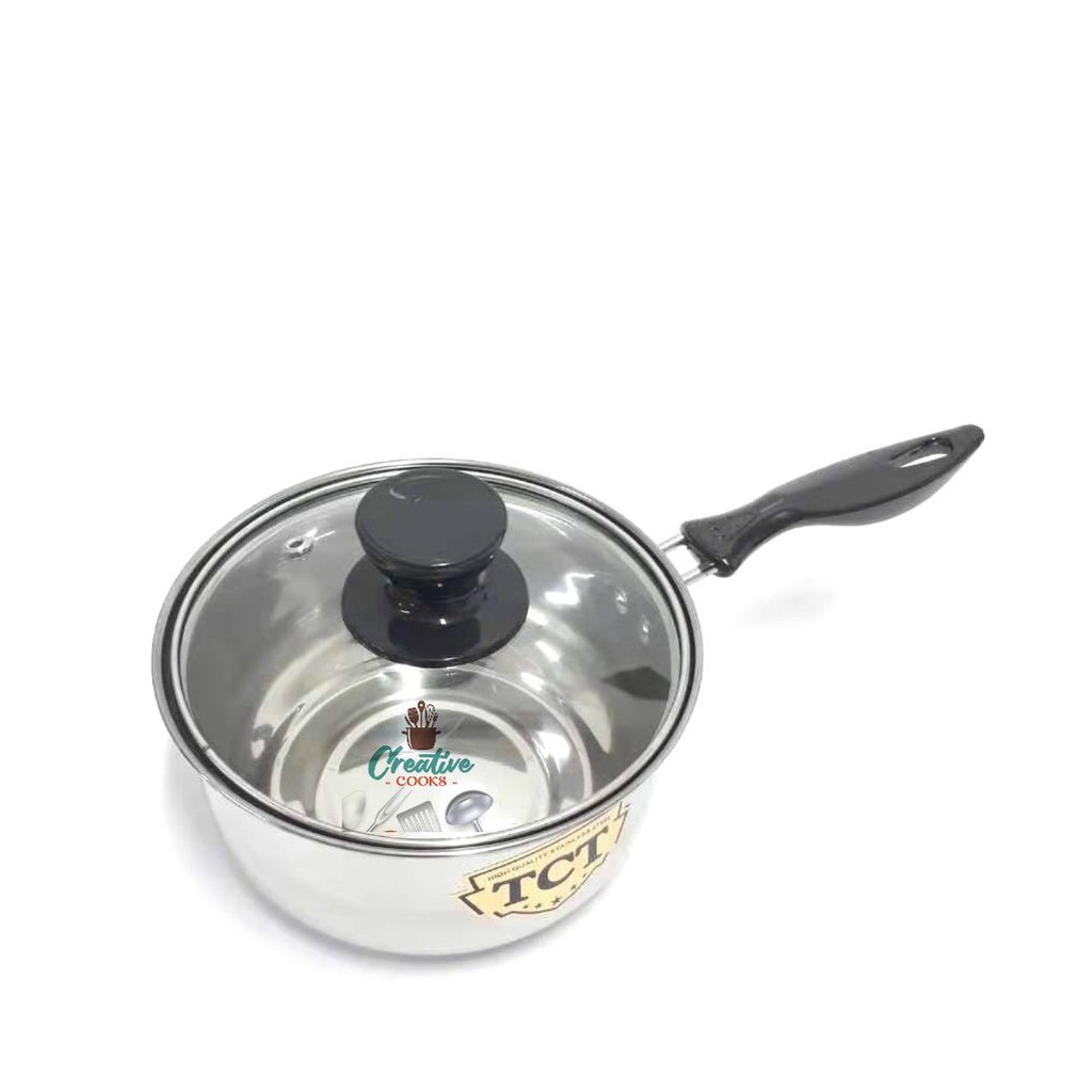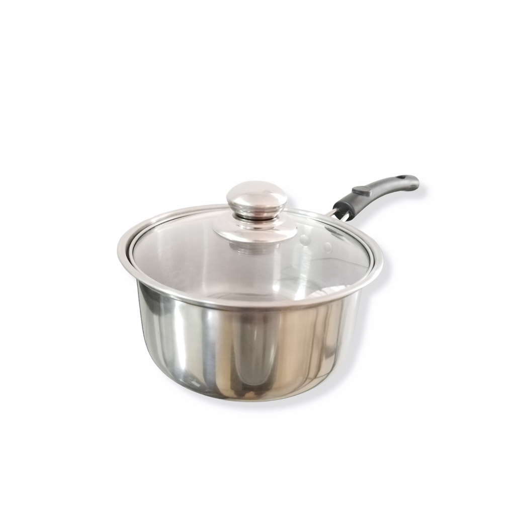 Stainless Steel Single Handle Milk Pot with Glass Cover ( 18cm )
