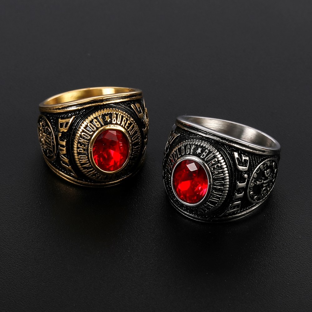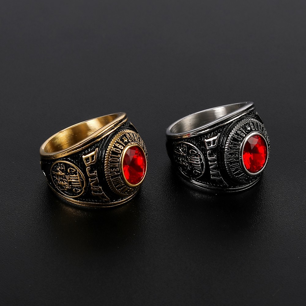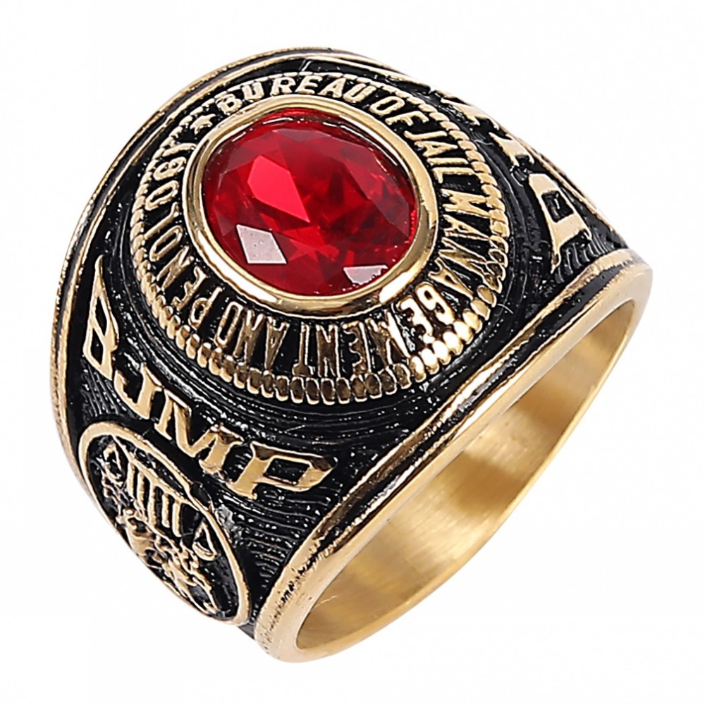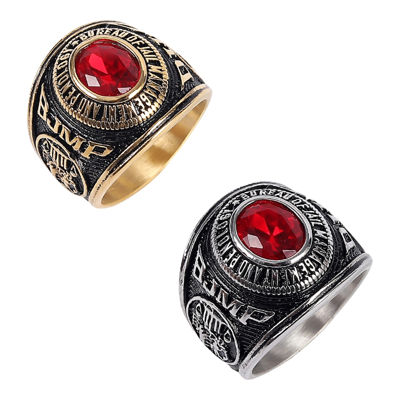 Stainless Steel Solid BJMP Bull Ring Red Black Gemstone Golden Plated Ring for Men Size 7-13