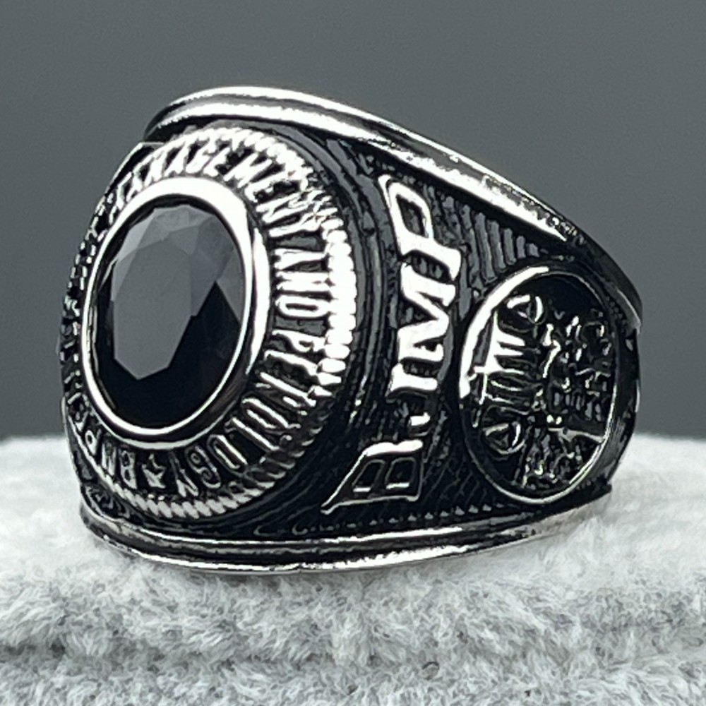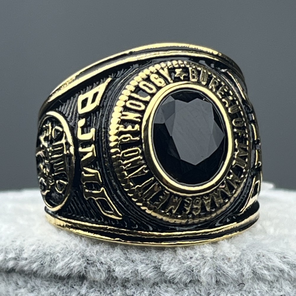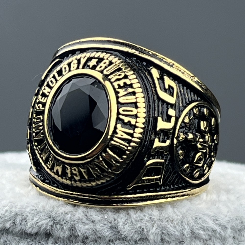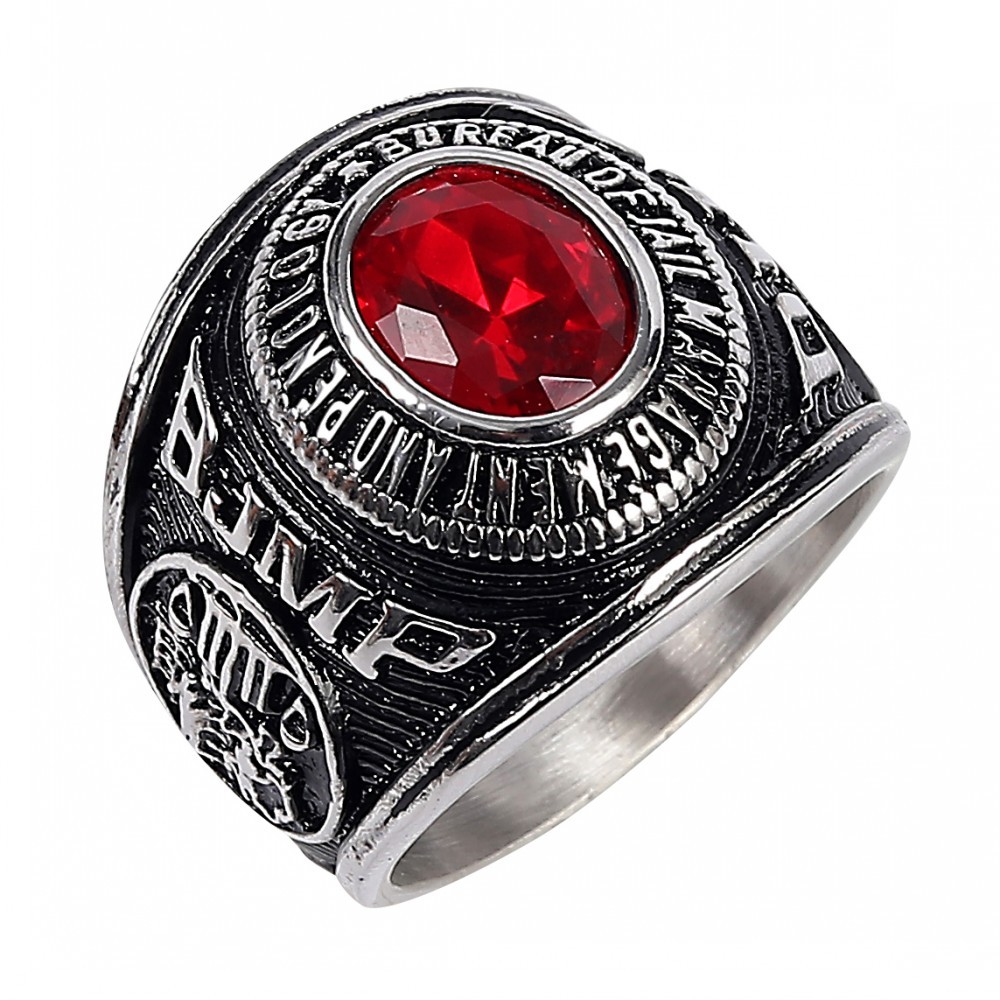 Stainless Steel Solid BJMP Bull Ring Red Black Gemstone Golden Plated Ring for Men Size 7-13