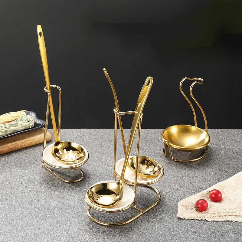 Stainless Steel Soup Spoon Holder Golden Service Hot Pot Filter Dining Table Rack Shell
