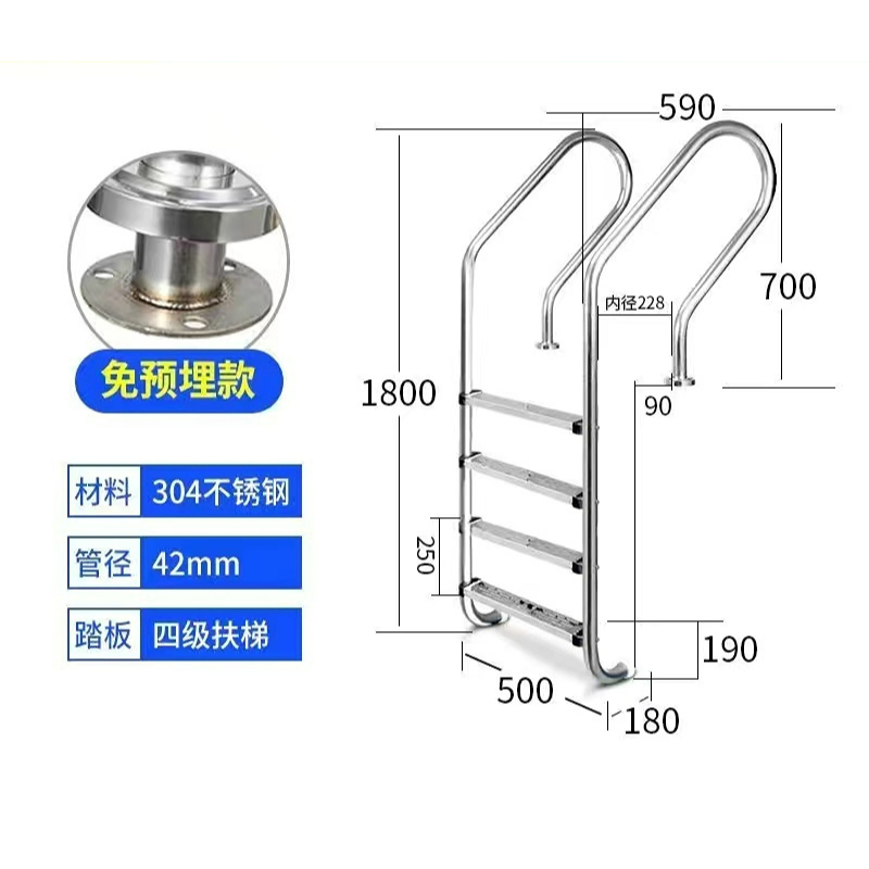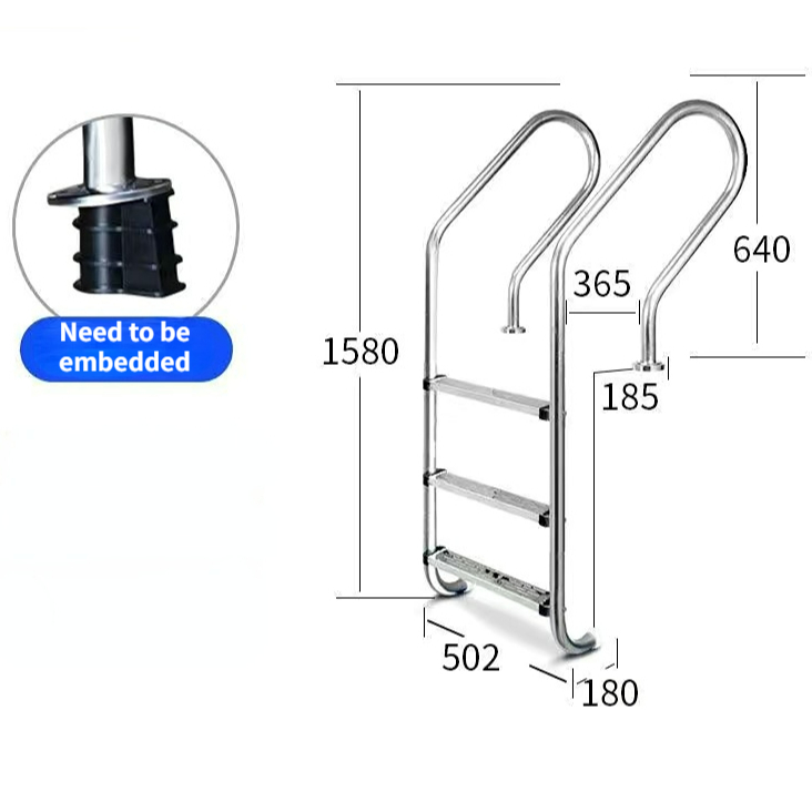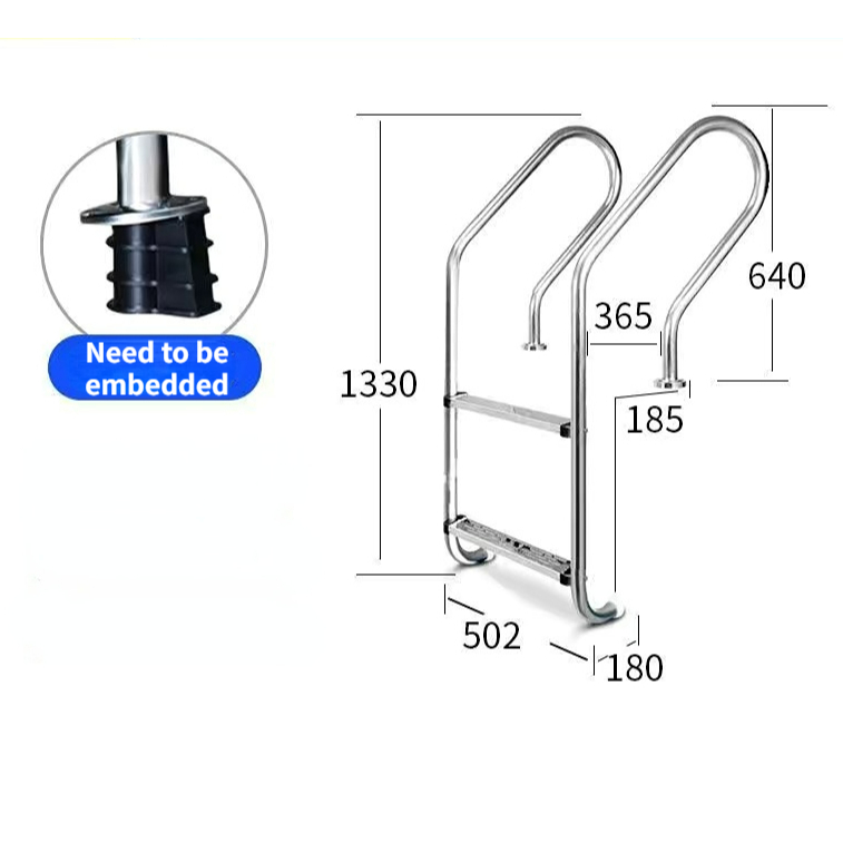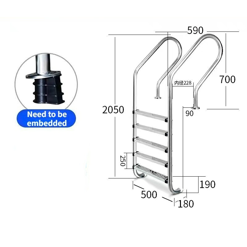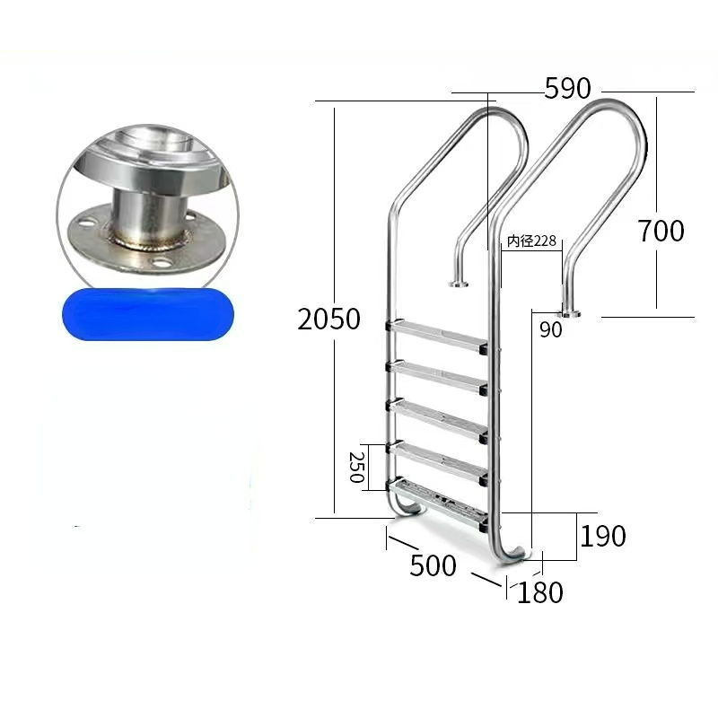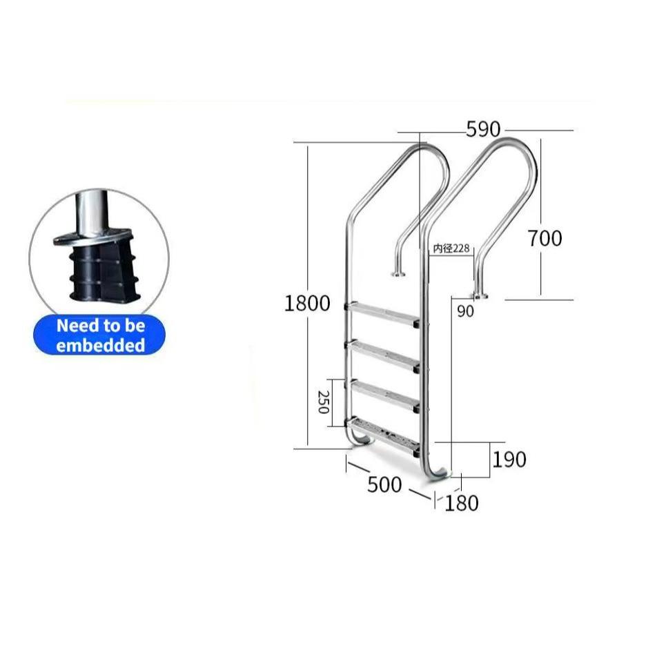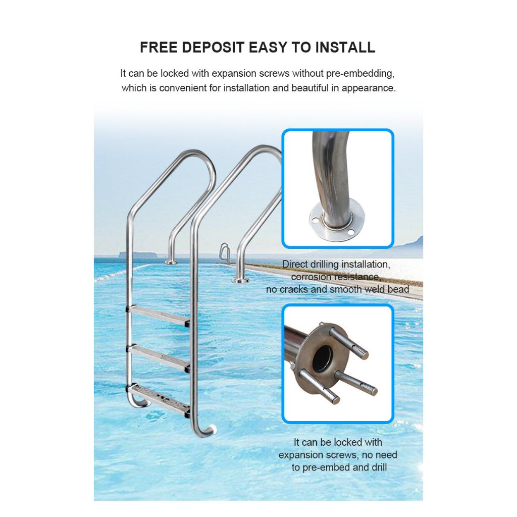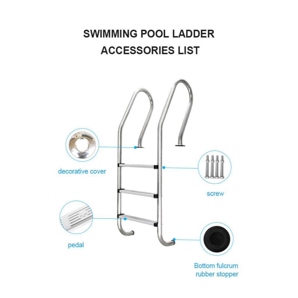 Stainless Steel Swimming Pool Step Ladder with Built-in P Shaped Grab Rail 2/3/4/5-step
