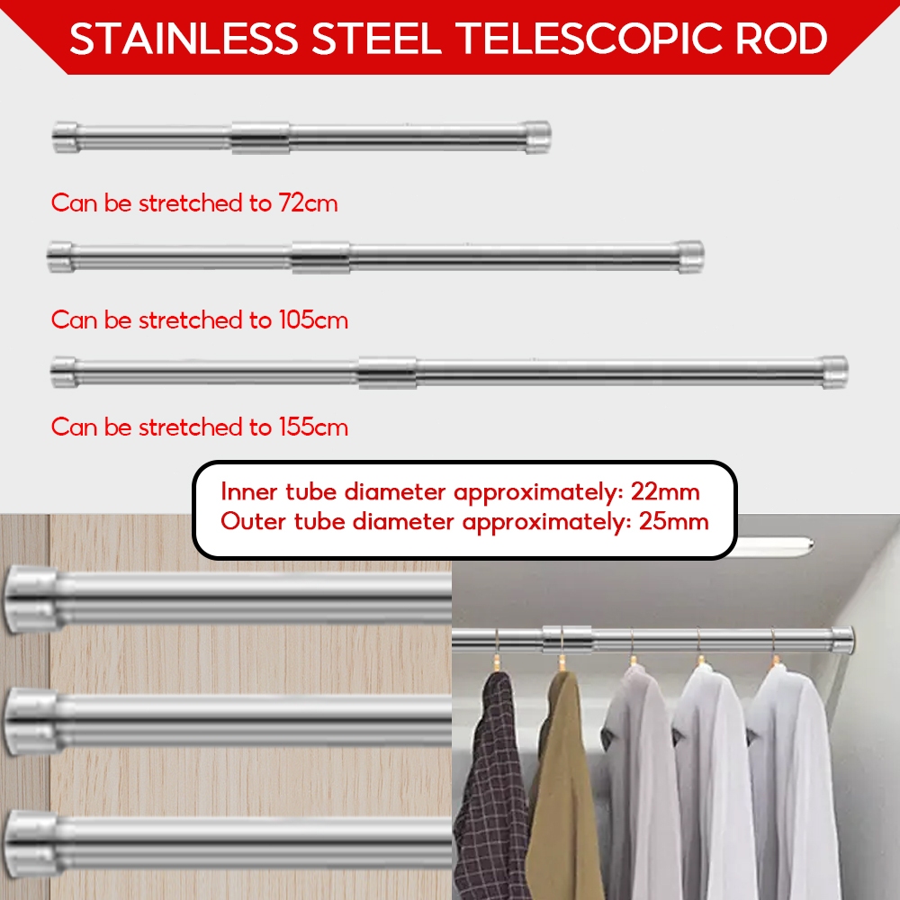 Stainless Steel Telescopic Rod Cabinet Rod Clothes Rod Wardrobe Rod Clothes Rail Hanging Rod
