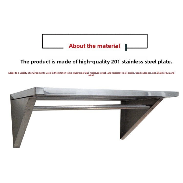 Stainless Steel Wall Rack Kitchen Wall-Mounted Shelf Storage Rack Hanging Rod Storage Microwave Oven Rack Single-Layer Partition
