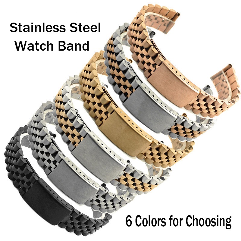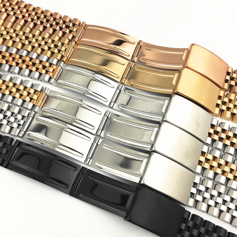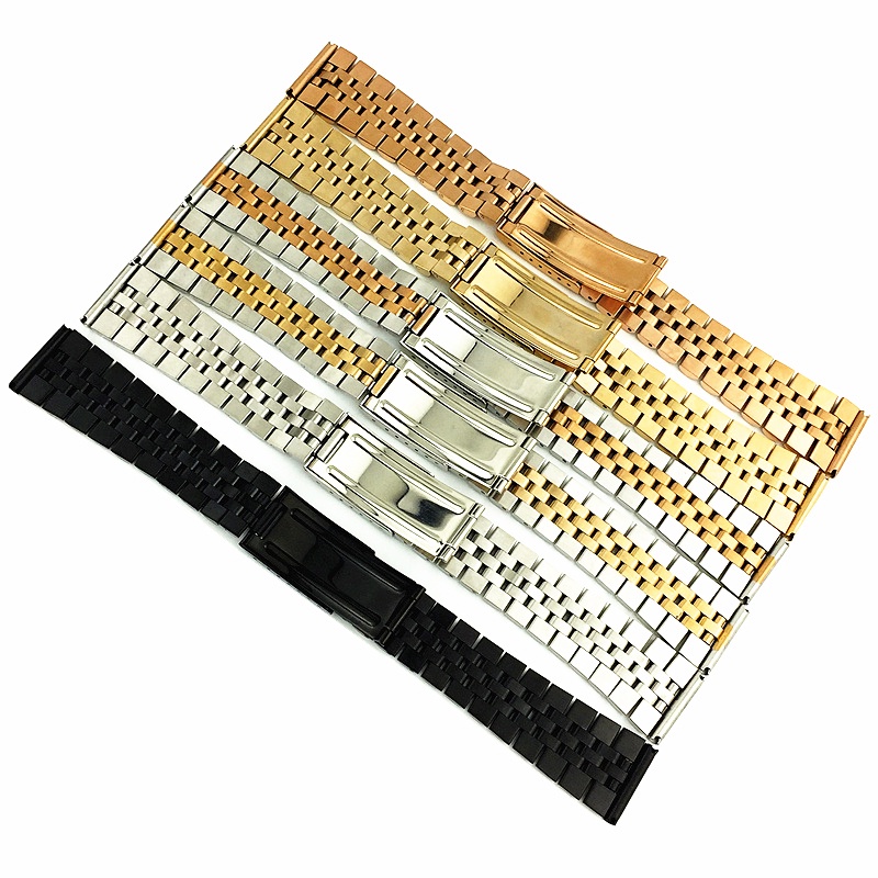 Stainless Steel Watch Band Meatal Five Bead Bracelet Replacement Classic Folding Clasp Strap Women Men Watch Accessories 18 20 22mm