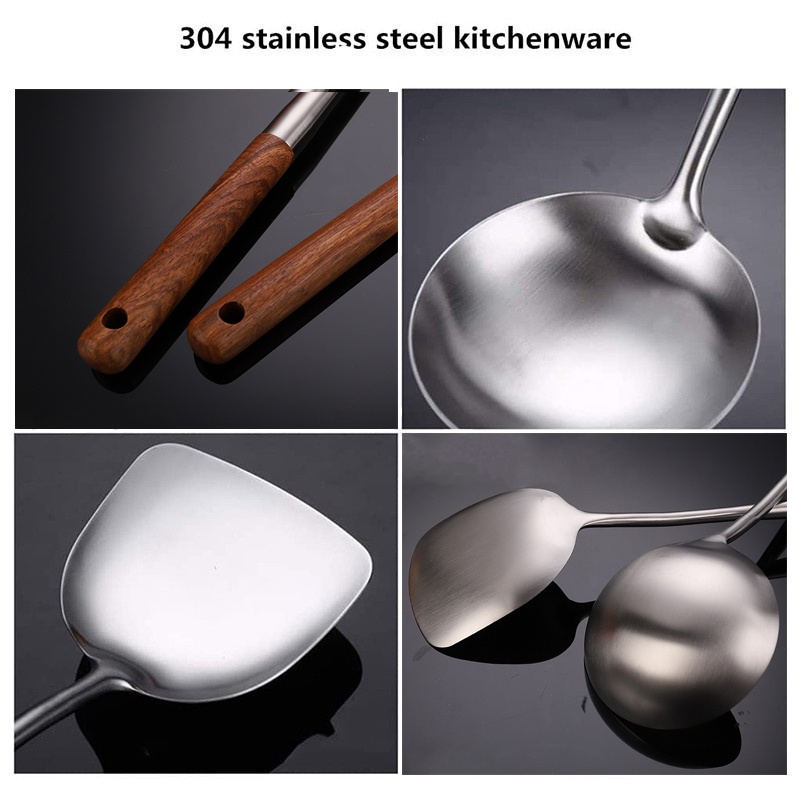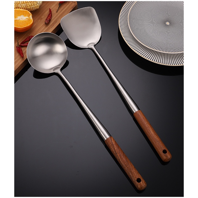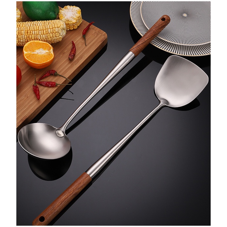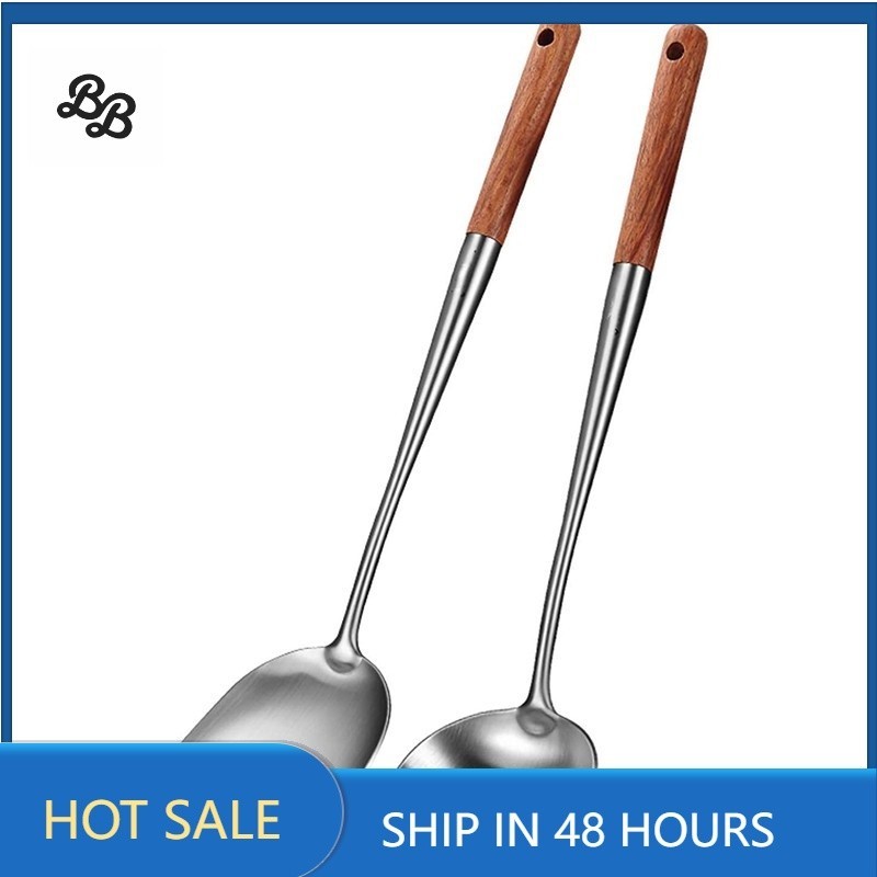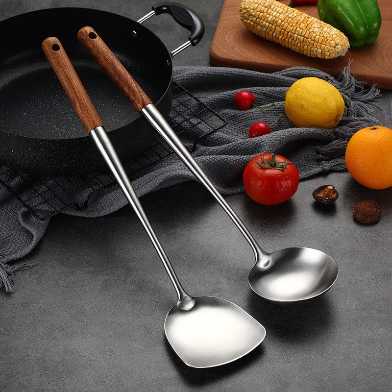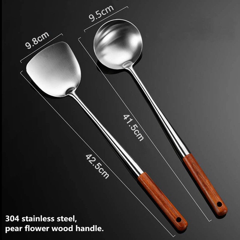 Stainless Steel Wok Spatula and Ladle Tool Set 17-inch Spatula Ladle Cooking Kitchenware