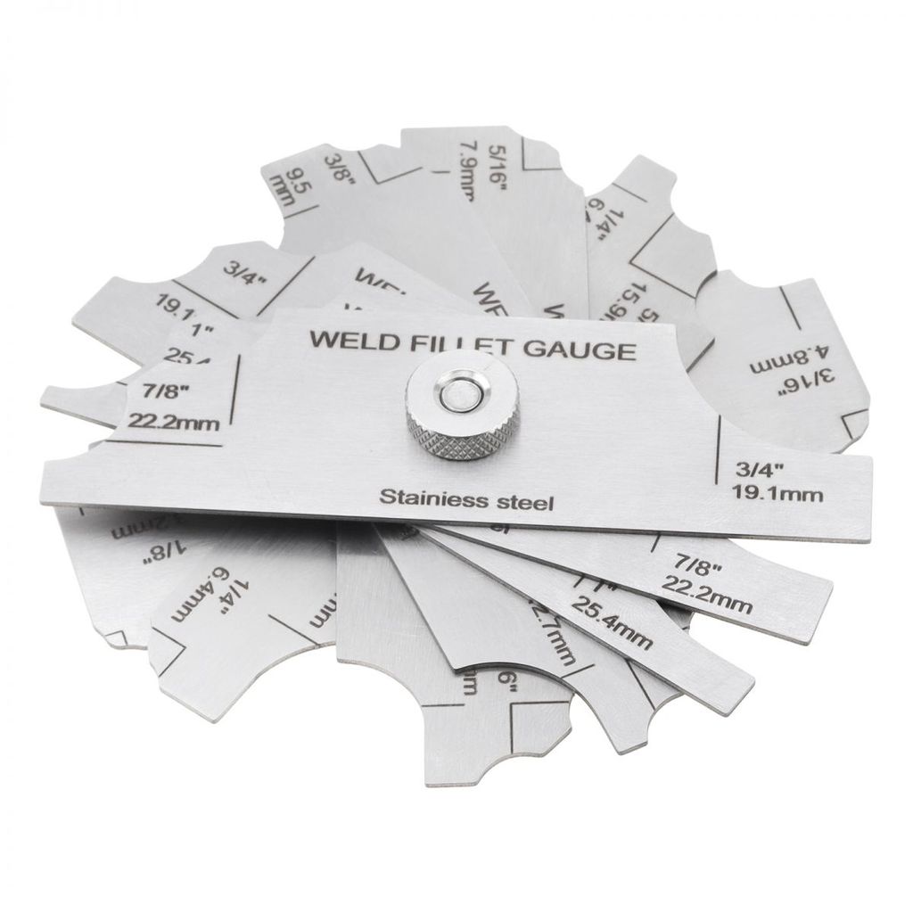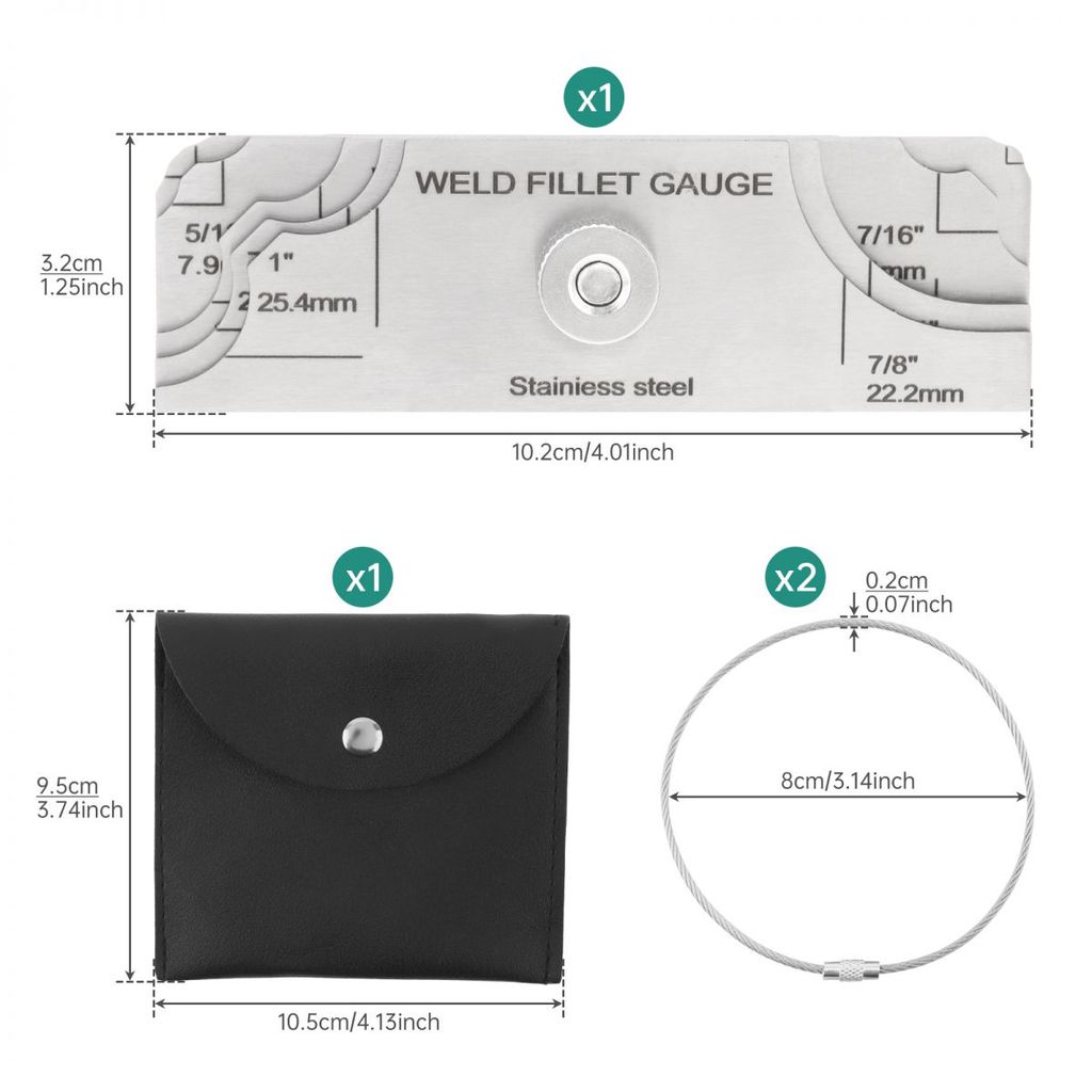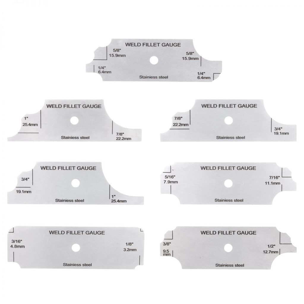 Stainless Steel inch / mm MG-11 7 Piece Fillet Weld Gauge Kit with Cable Keychain, Metric & Imperial Scale E-tched Markings Welding Measure Inspection Tools