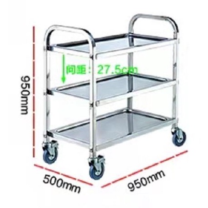 Stainless steel 95*50*90cm Kitchen Trolley food service cart carrier plate collecting buss out tray