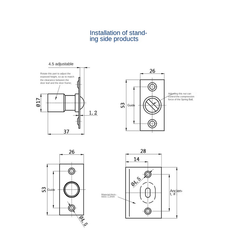 Stainless steel adjustable door roller lock spring loaded ball bolt lock invisible door top bead