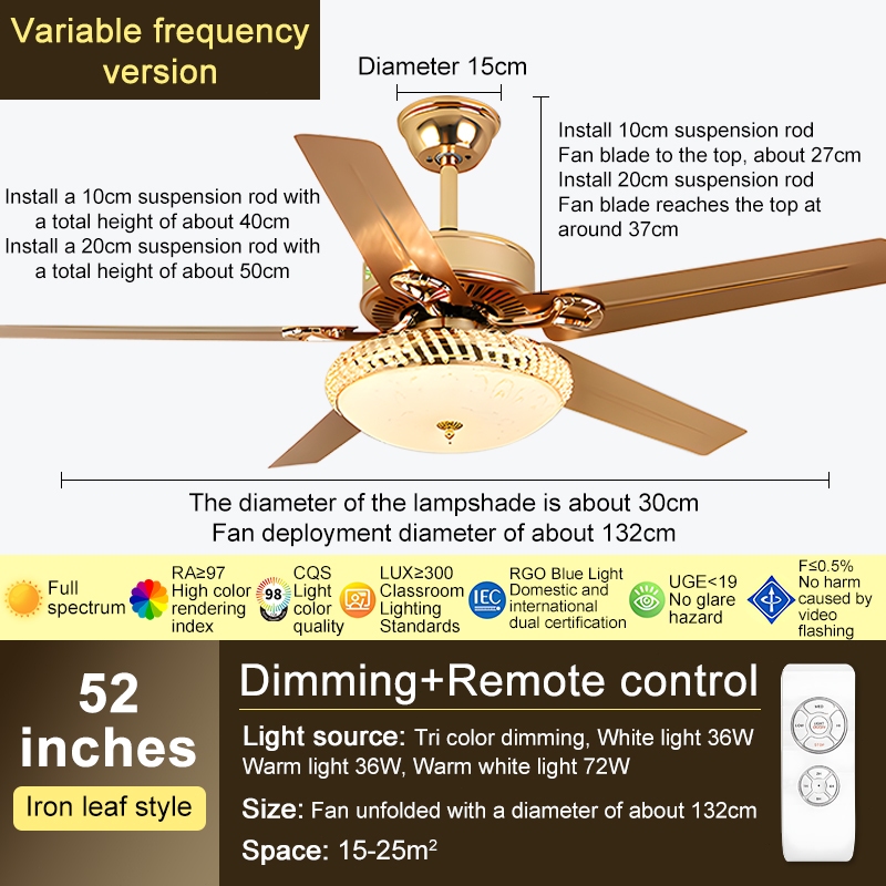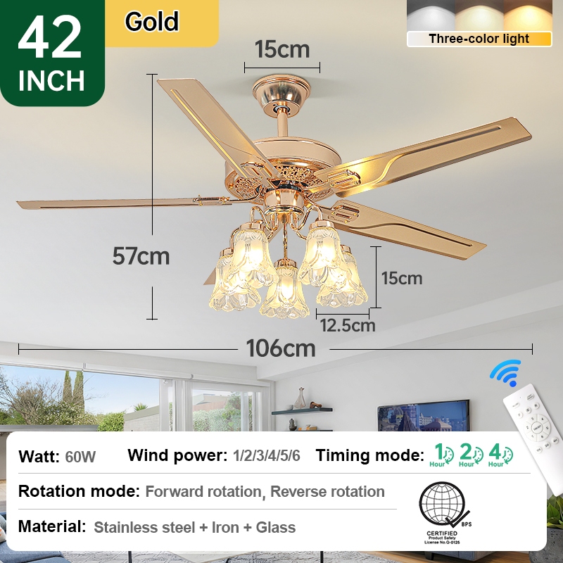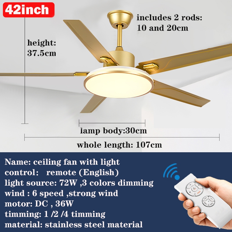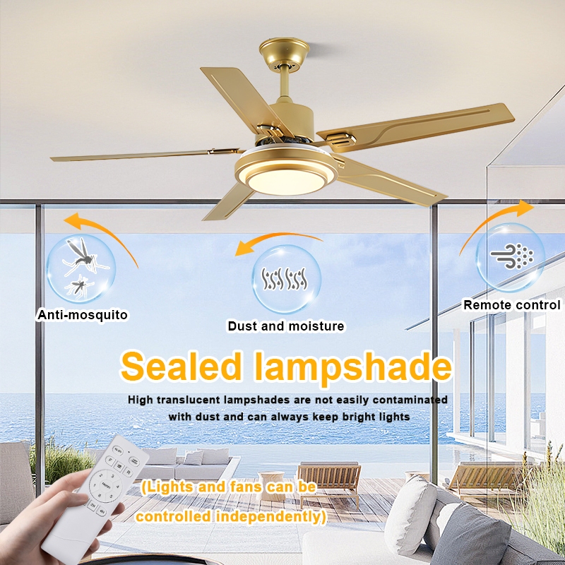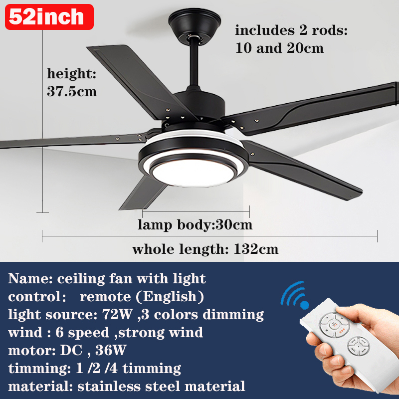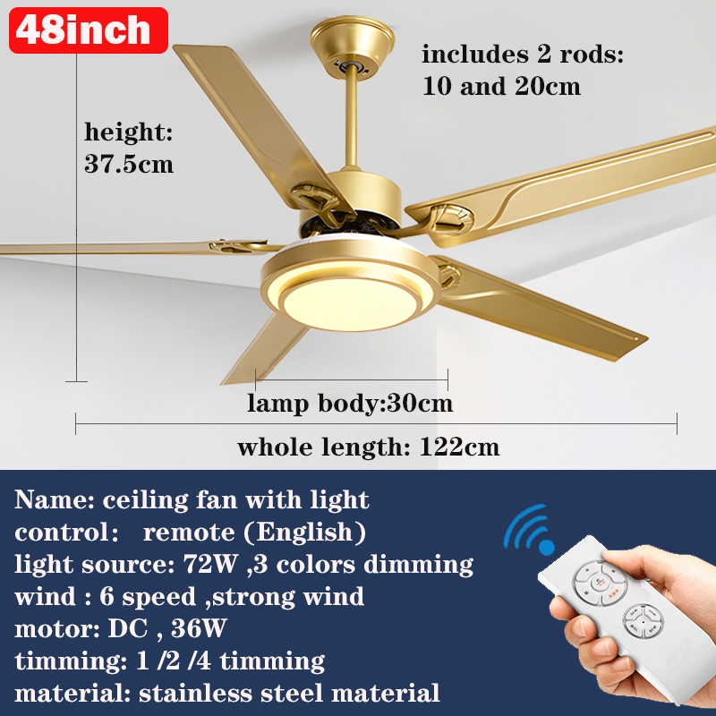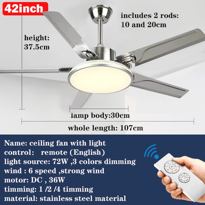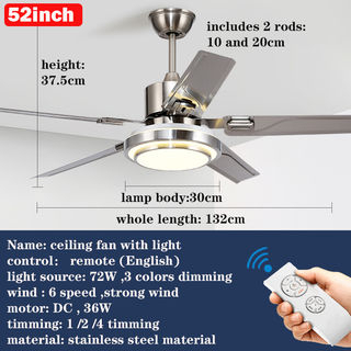 Stainless steel ceiling fan with light big size nordic modern chandelier industrial celing fans lamp