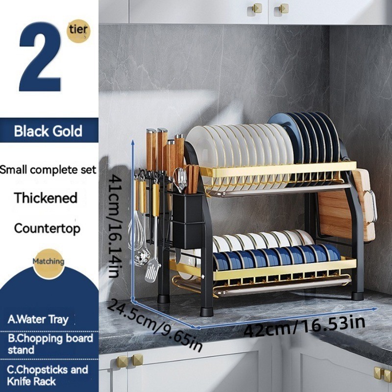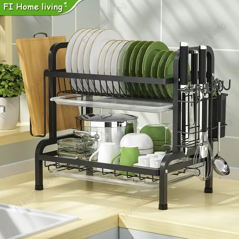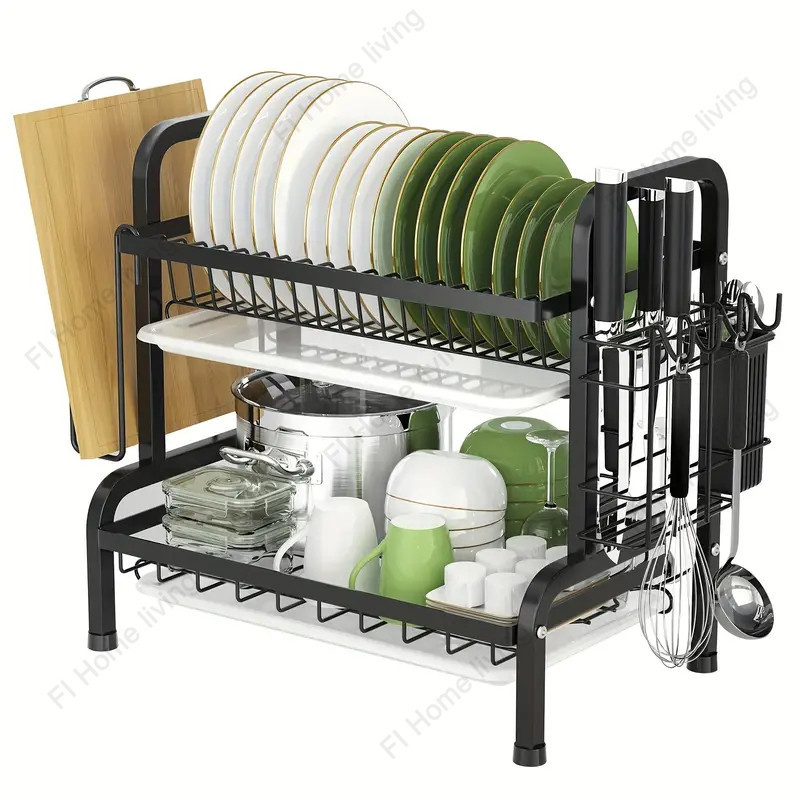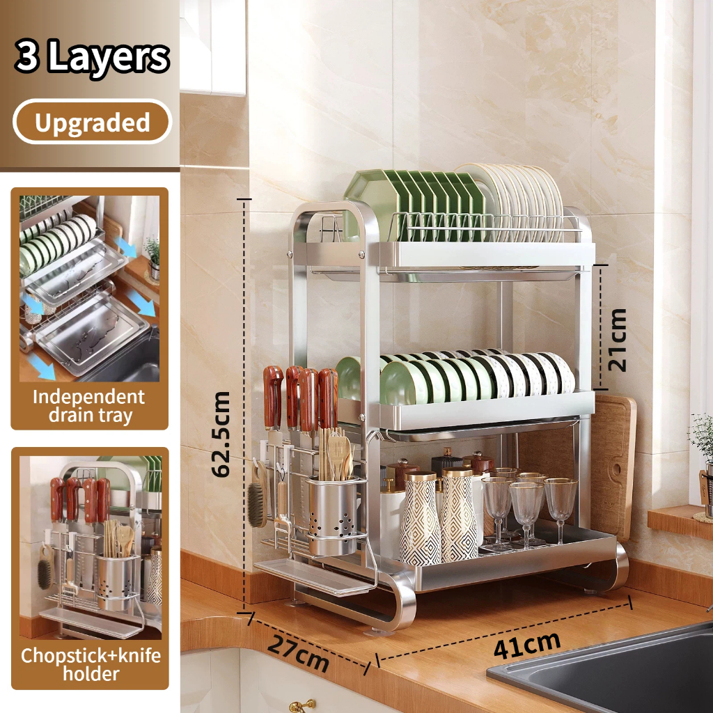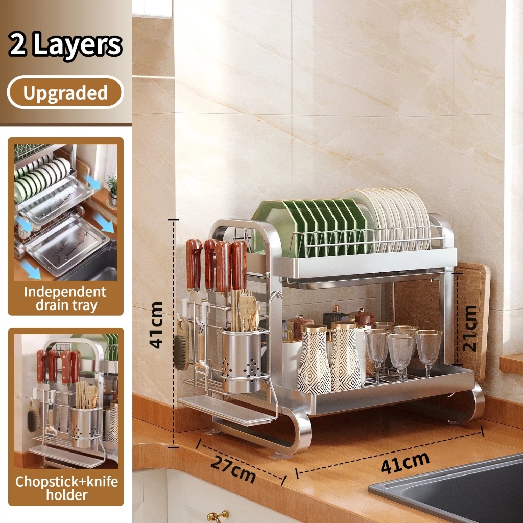 Stainless steel dish rack kitchen dish rack rust-proof dish storage with drain pan utensil organizer