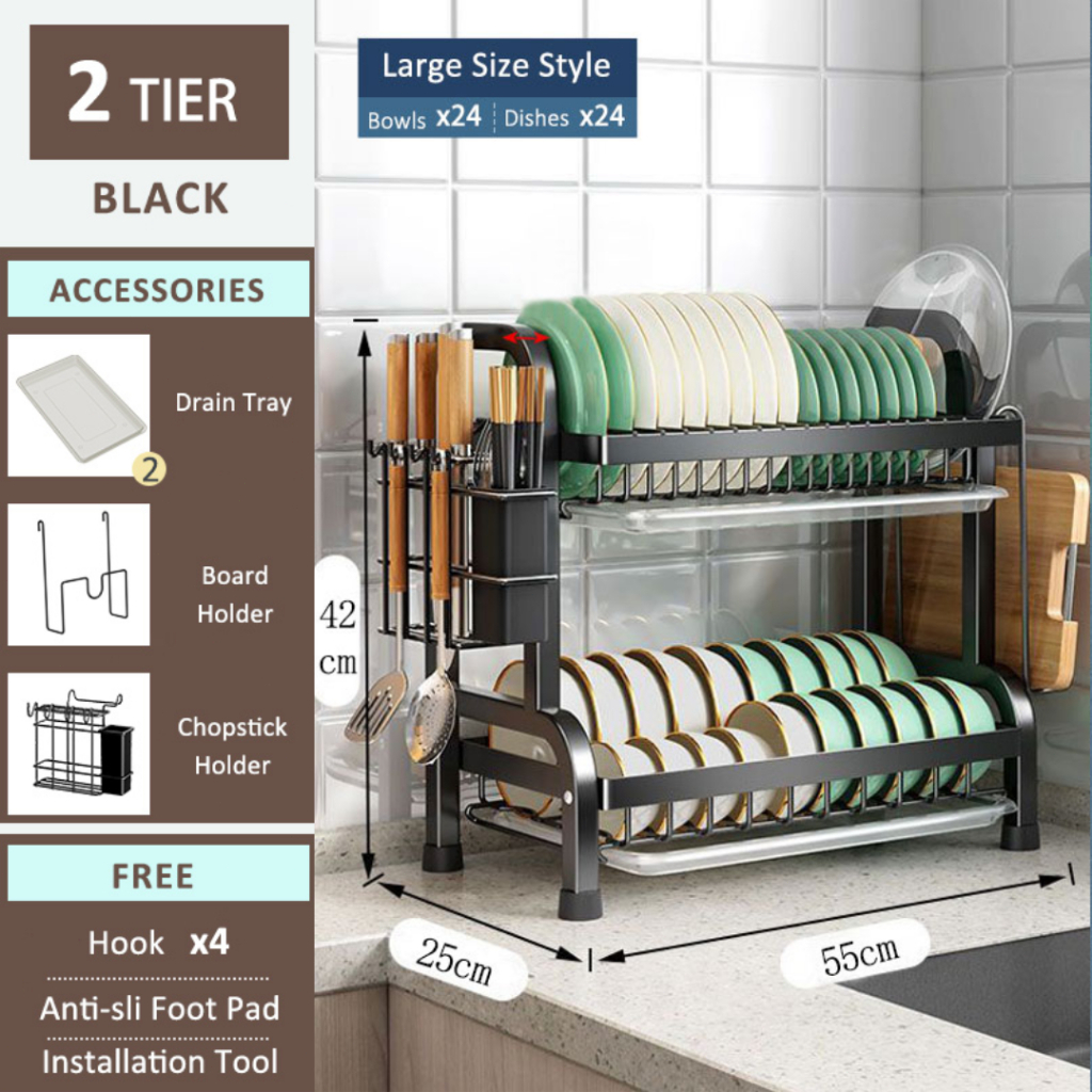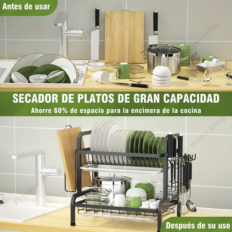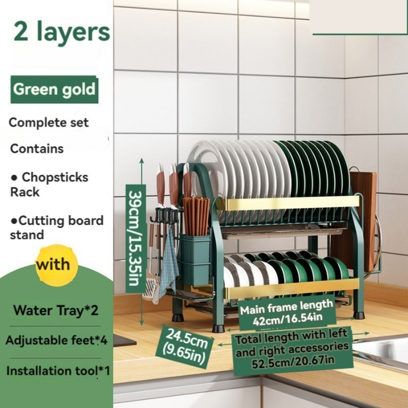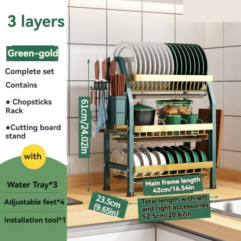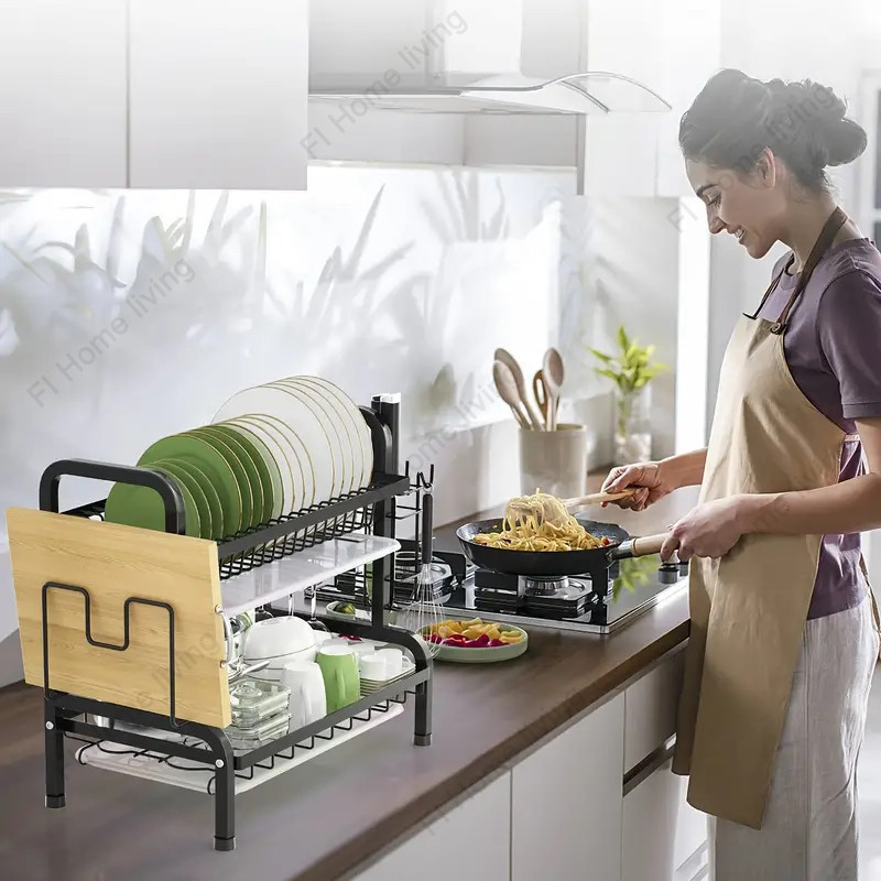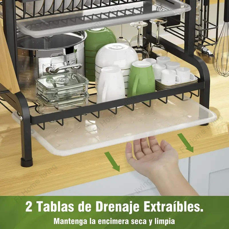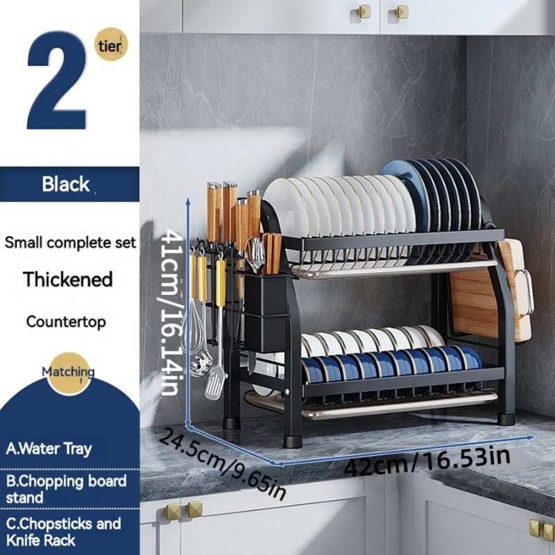 Stainless steel dish rack kitchen dish rack rust-proof dish storage with drain pan utensil organizer