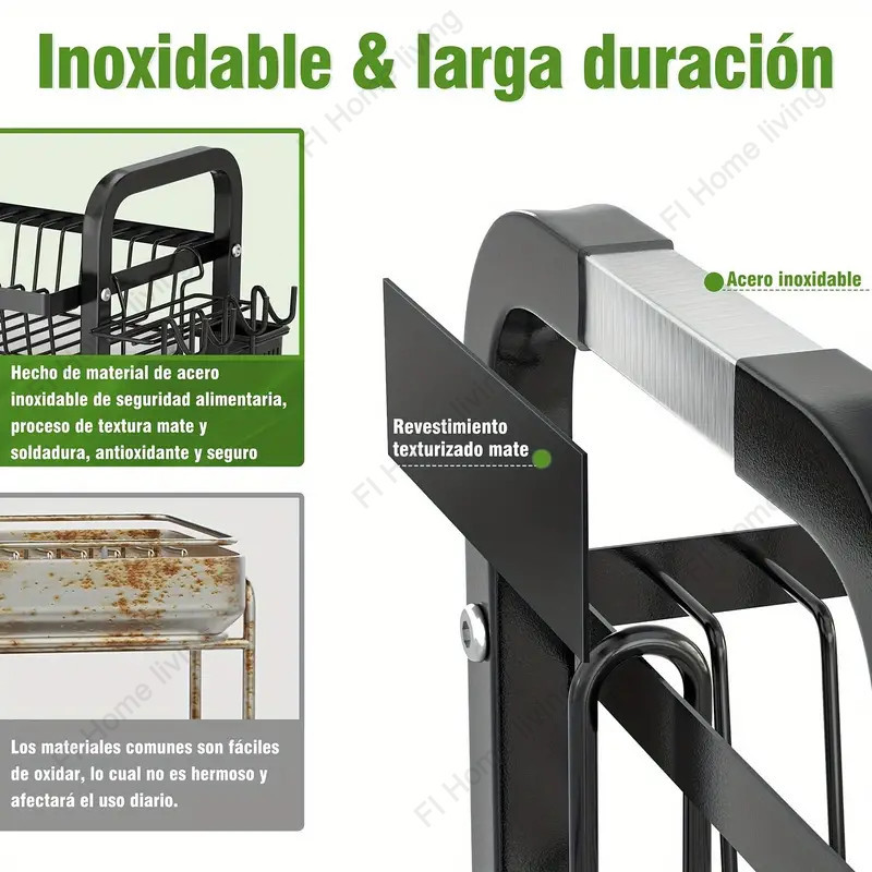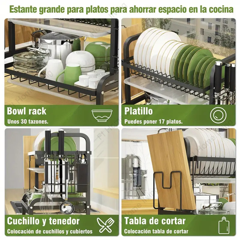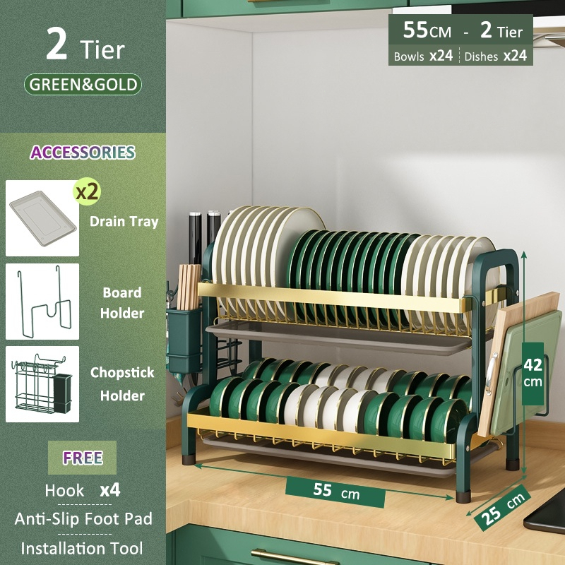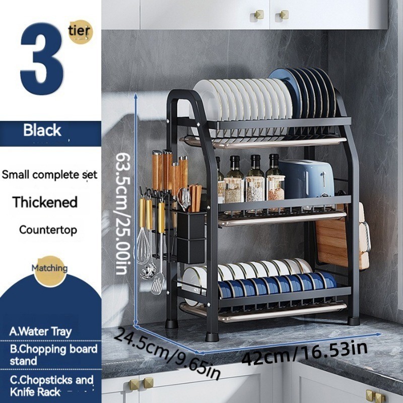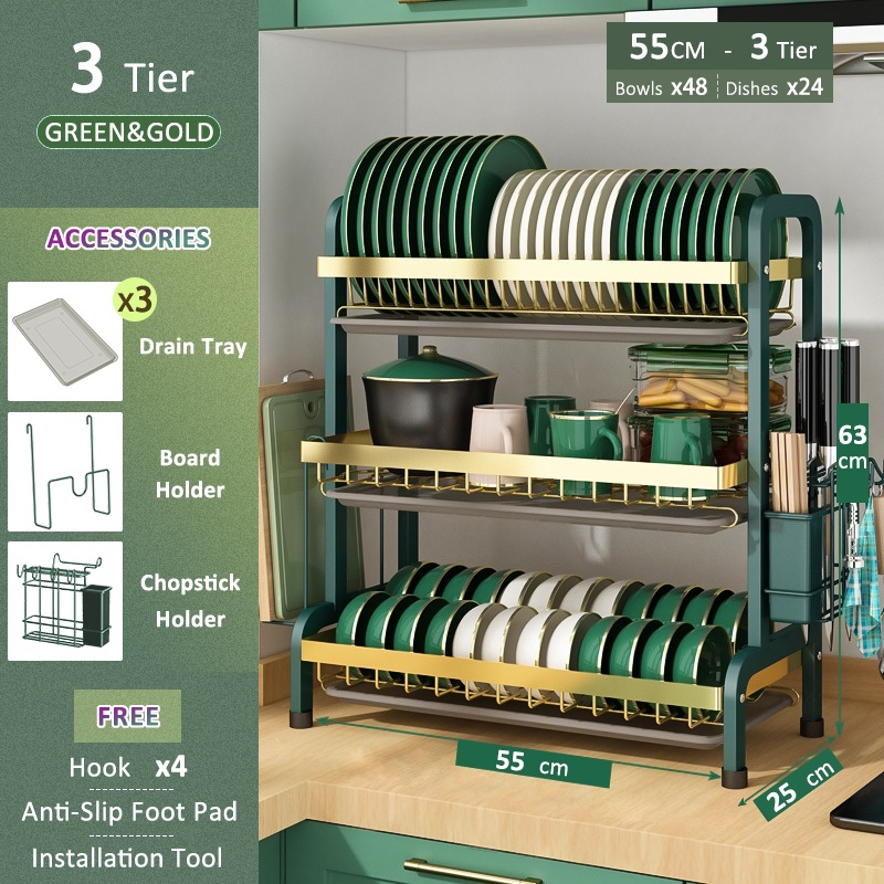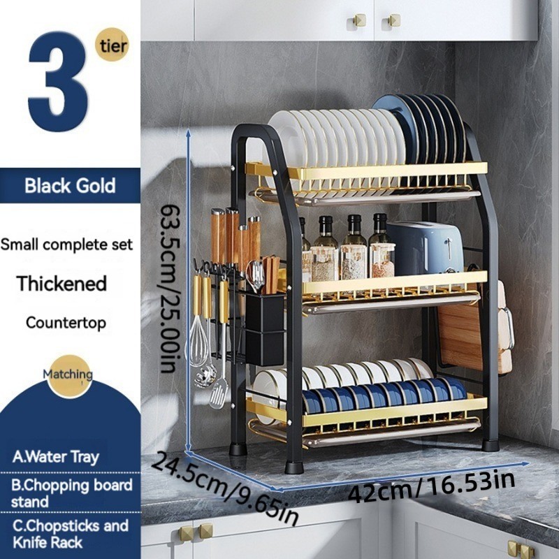 Stainless steel dish rack kitchen dish rack rust-proof dish storage with drain pan utensil organizer