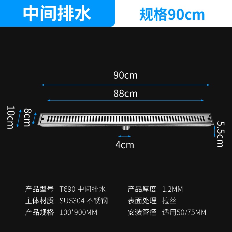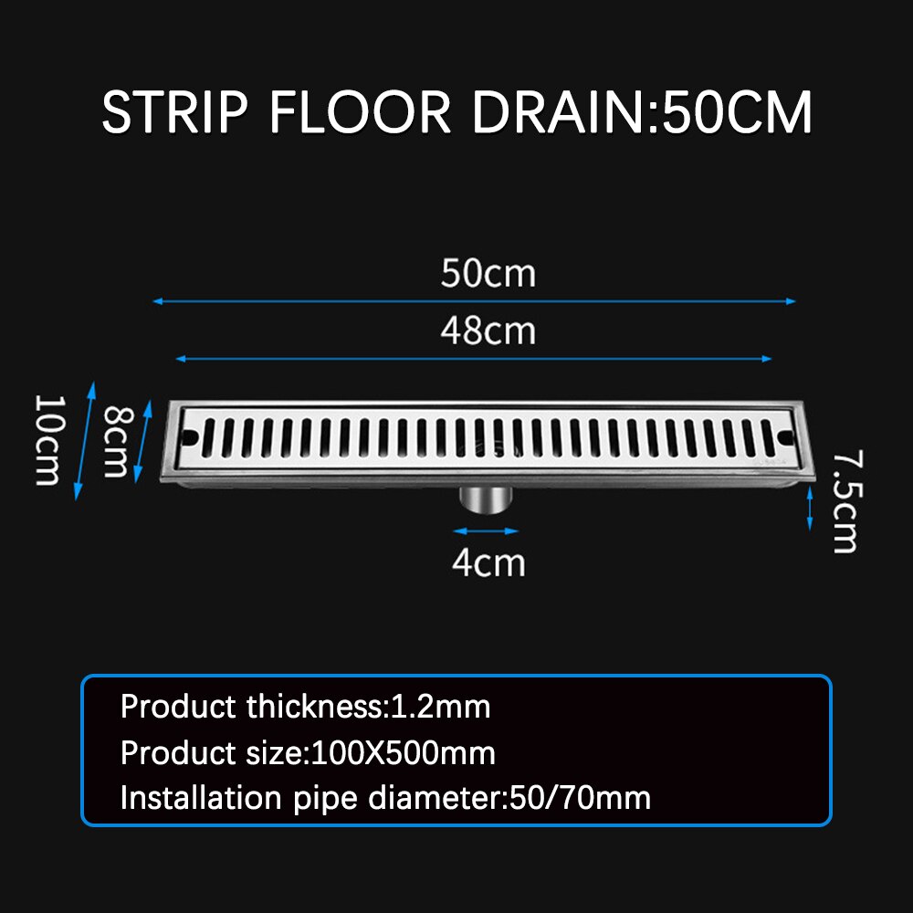 Stainless steel floor drain deodorant bathroom shower drain rectangular bathtub drain pipe multiple sizes suitable for kitchen toilet