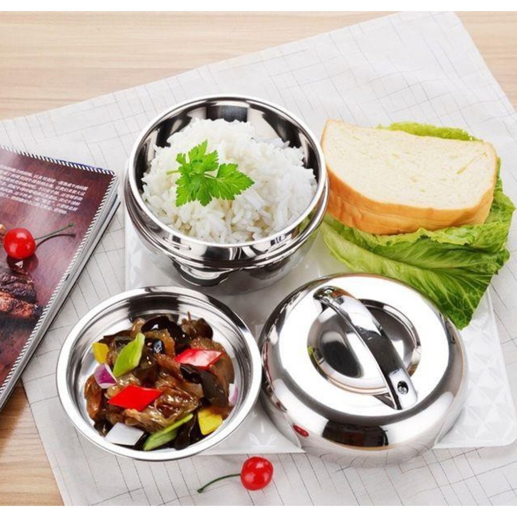 Stainless steel insulated lunch box Apple round double-layer lunch box fashion student lunch box