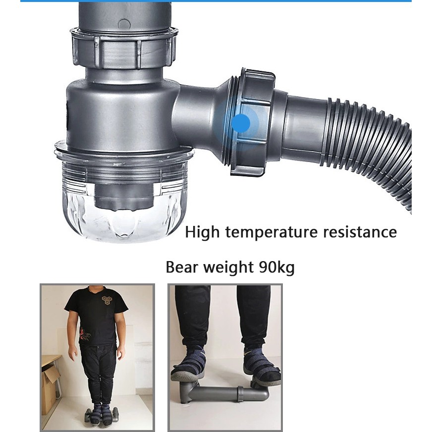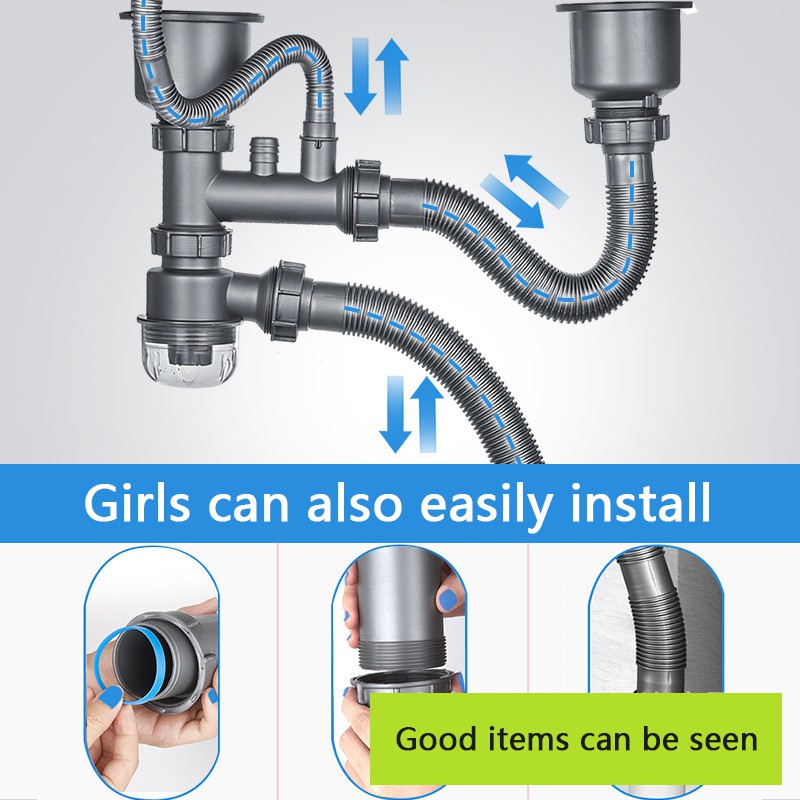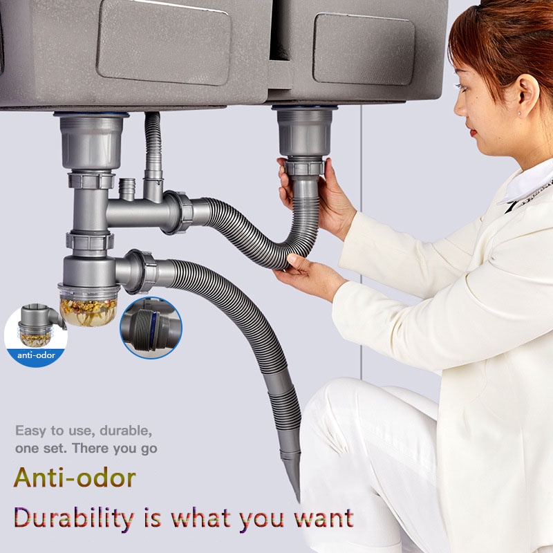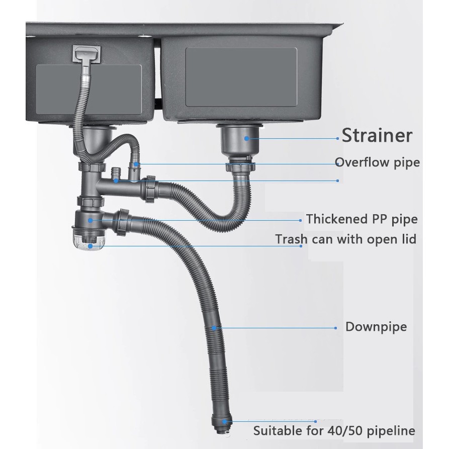 Stainless steel kitchen double sink p-trap hose and sink Strainer drainer Anti-return odor