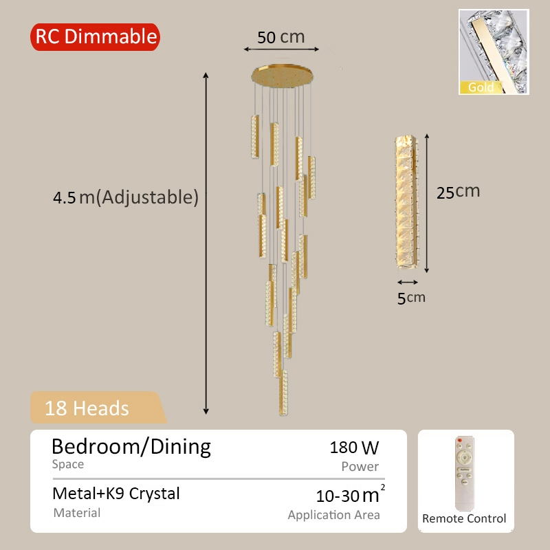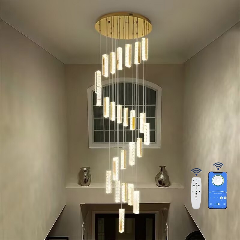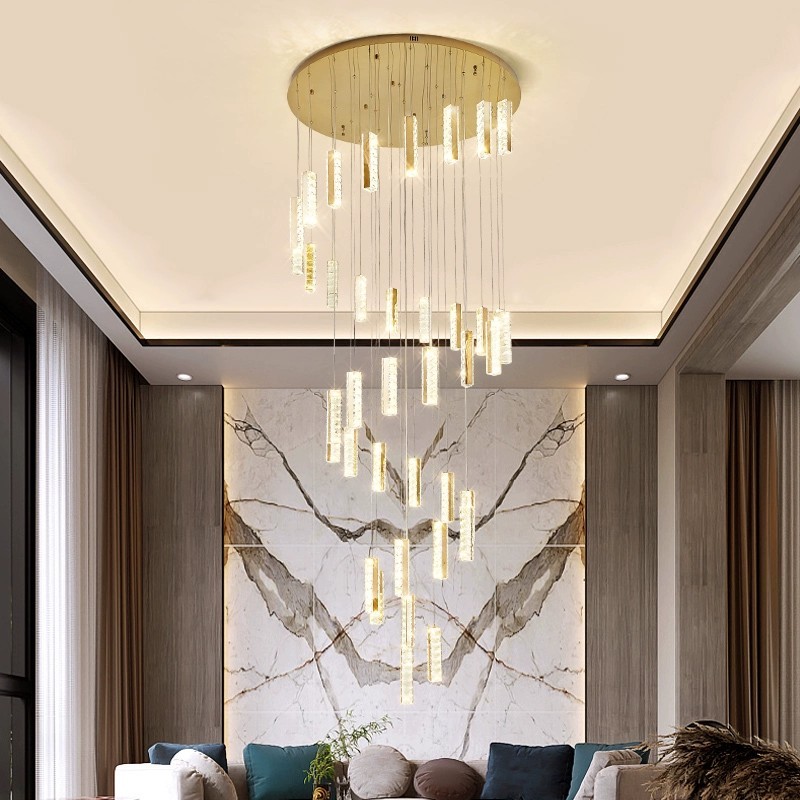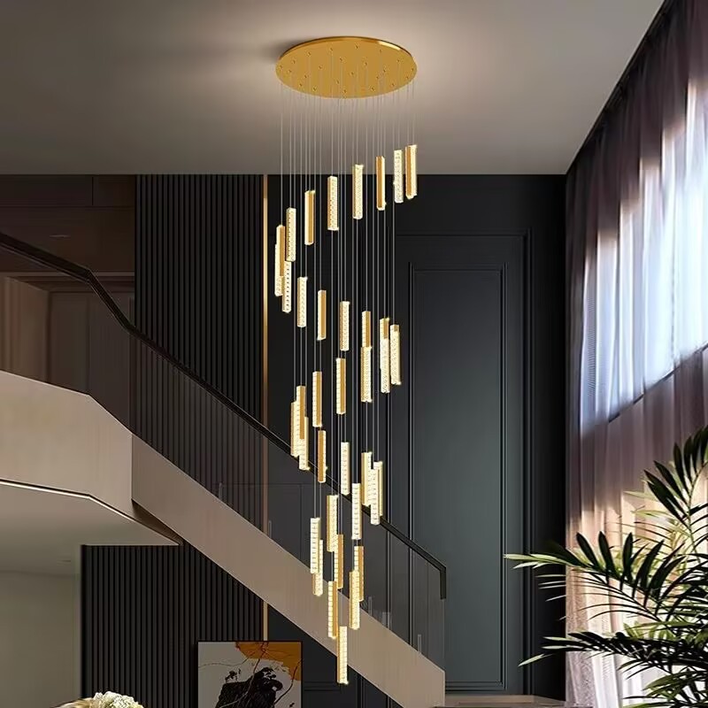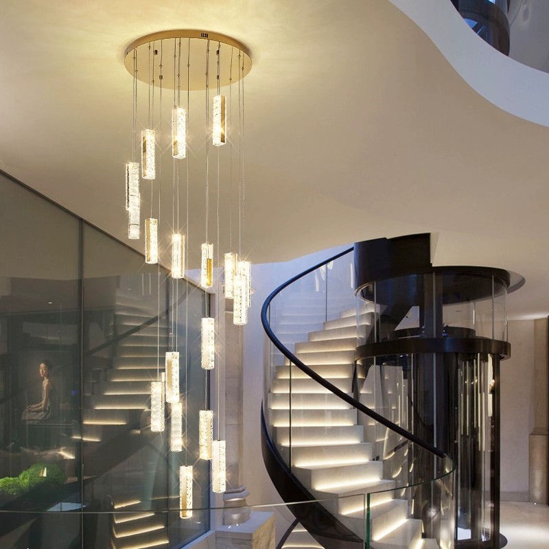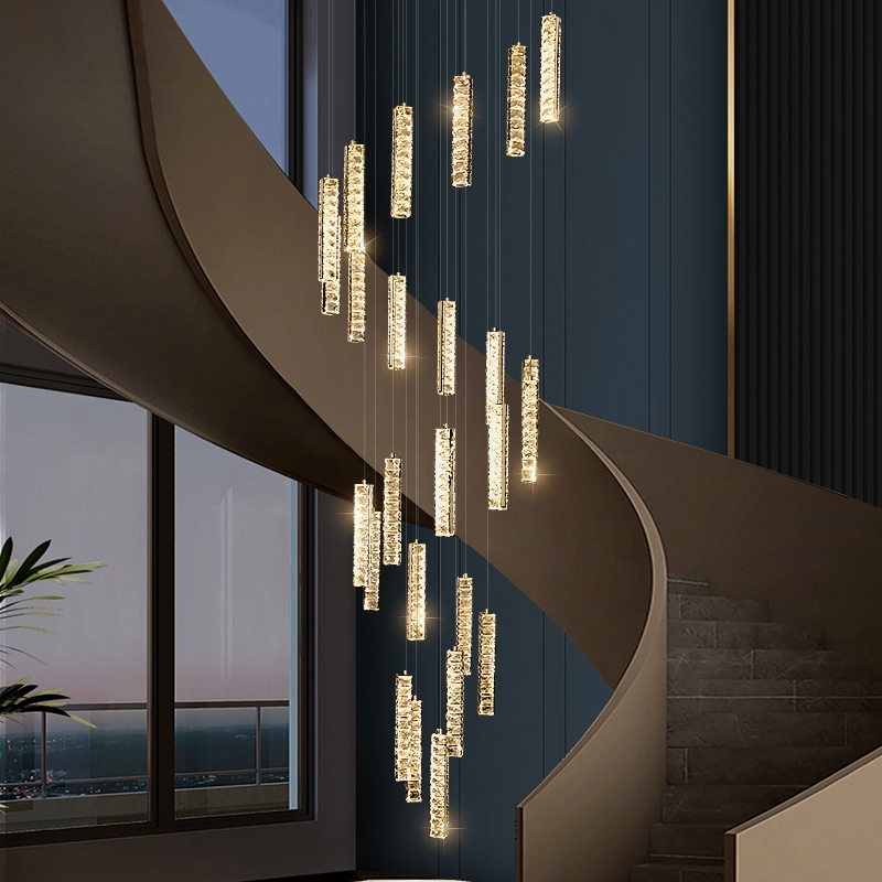 Stair Chandelier Modern Pendant Light Stairway Lighting Long Drop Lights crystal Ceiling Lamp