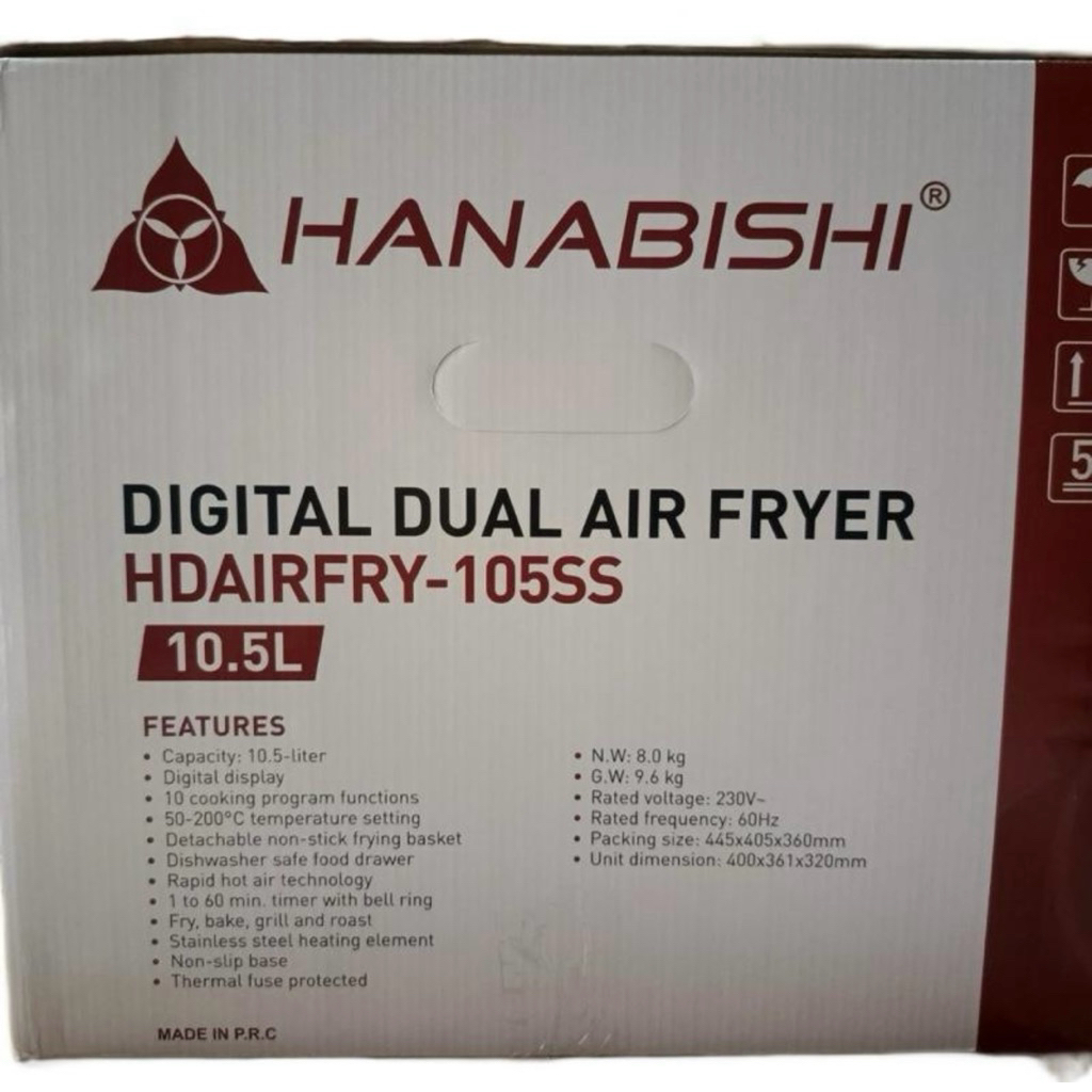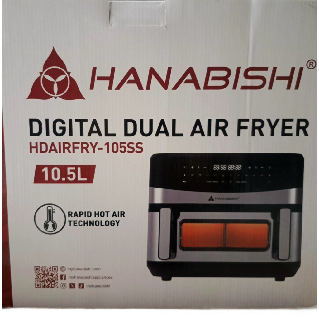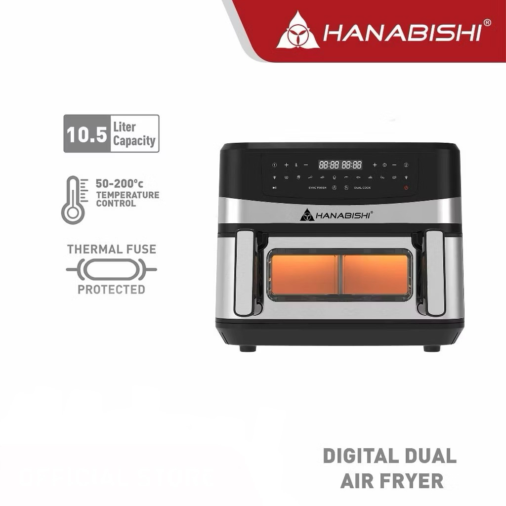 Hanabishi Digital Dual Air Fryer HDAIRFRY-105SS 10.5 Liters / 10 Cooking Function