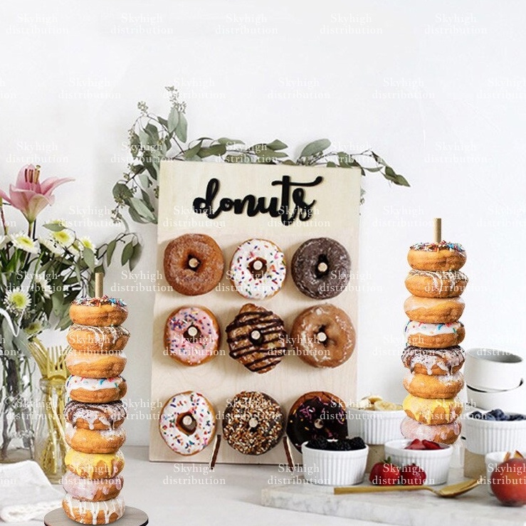 Stand Holder Wooden Donuts Wall Display Donut Sweets Doughnut Rack for Party Birthday Wedding SHD