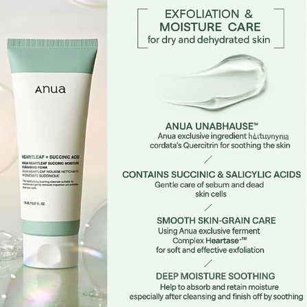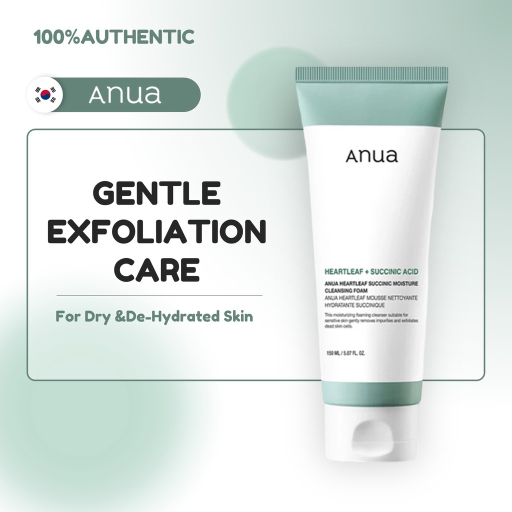 【Anua】 Heartleaf Succinic Moisture Cleansing Foam 150ml Formulasi gel transparan