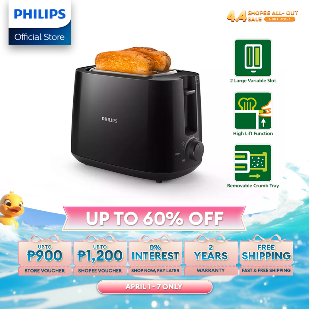 PHILIPS Toaster Two Large Variable Slot With 8 Settings and Integrated Bun Warming Rack