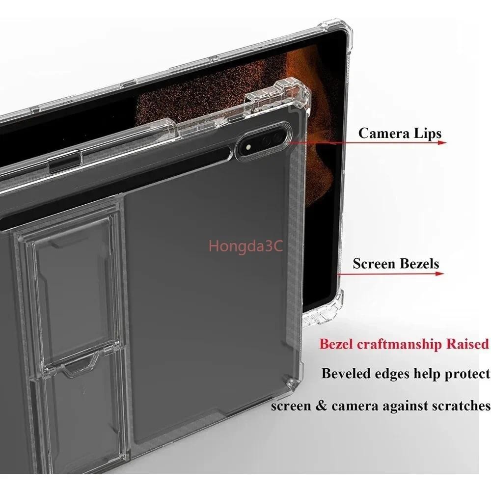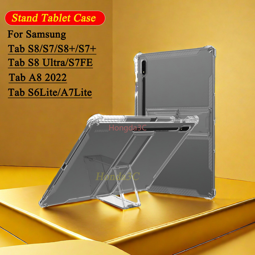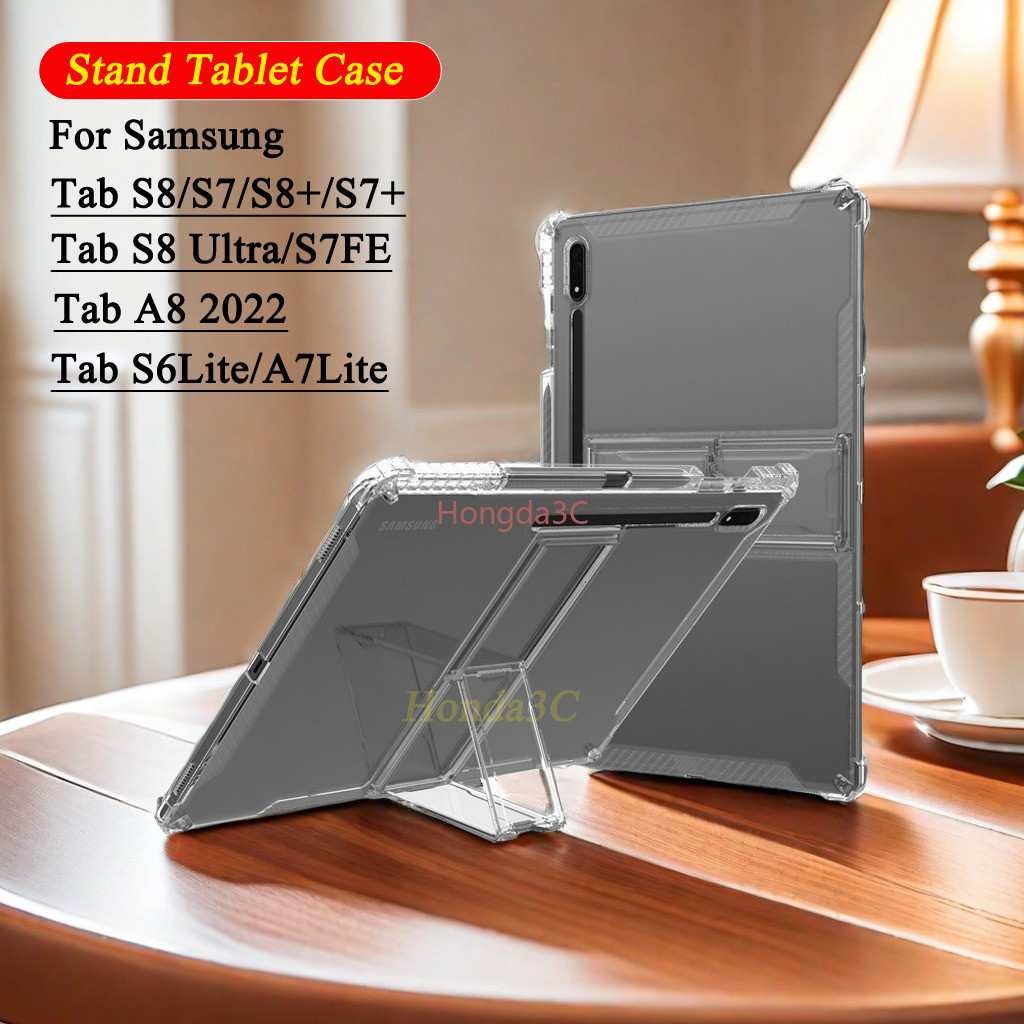 Stand Tablet Case For Samsung Galaxy Tab S8 Plus S8Ultra A7Lite S8plus With Pen Holder TPU Transparent Soft Cover For Galaxy S7 PLUS FE 12.4 S6 Lite 10.4 s7Fe 11" A8 10.5 2022