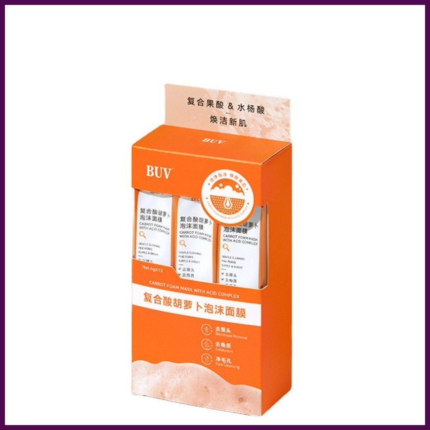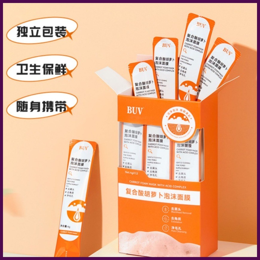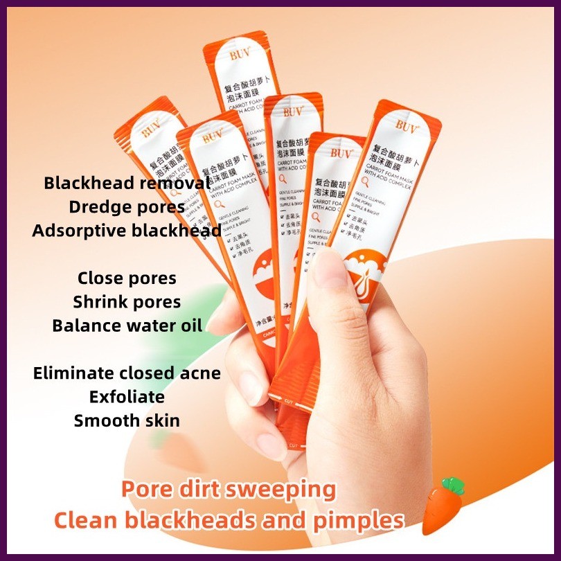 ♧ ← ≅ BUV Complex Acid Carrot Foam Facial Mask 12pcs/box BlackHead Remover Salicylic Acid Bubble Ma