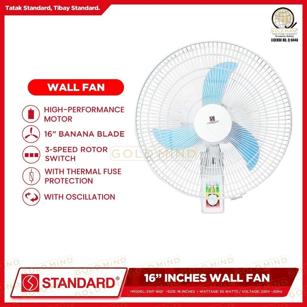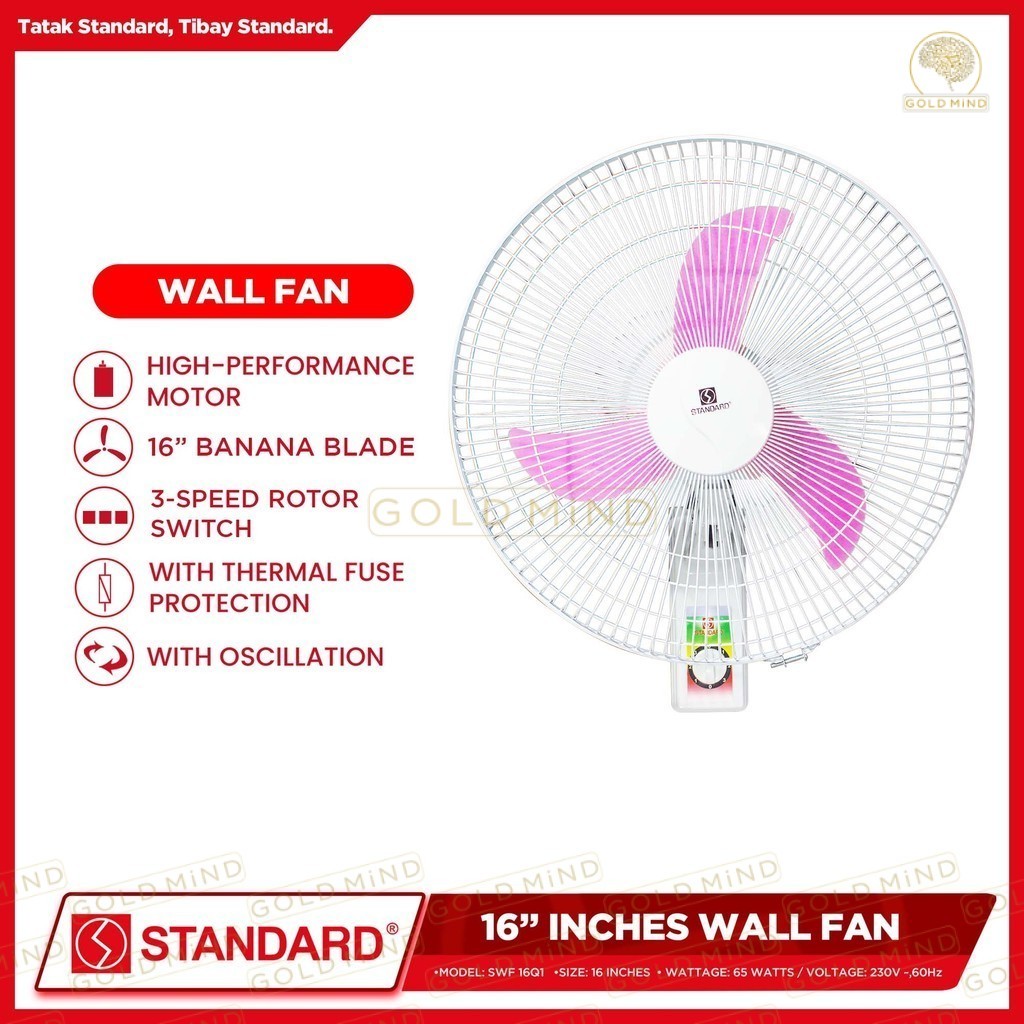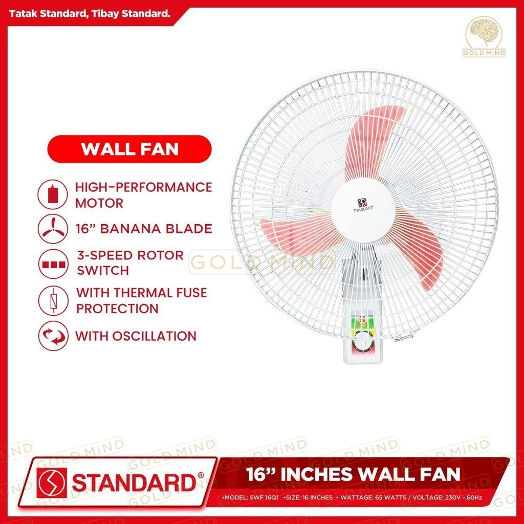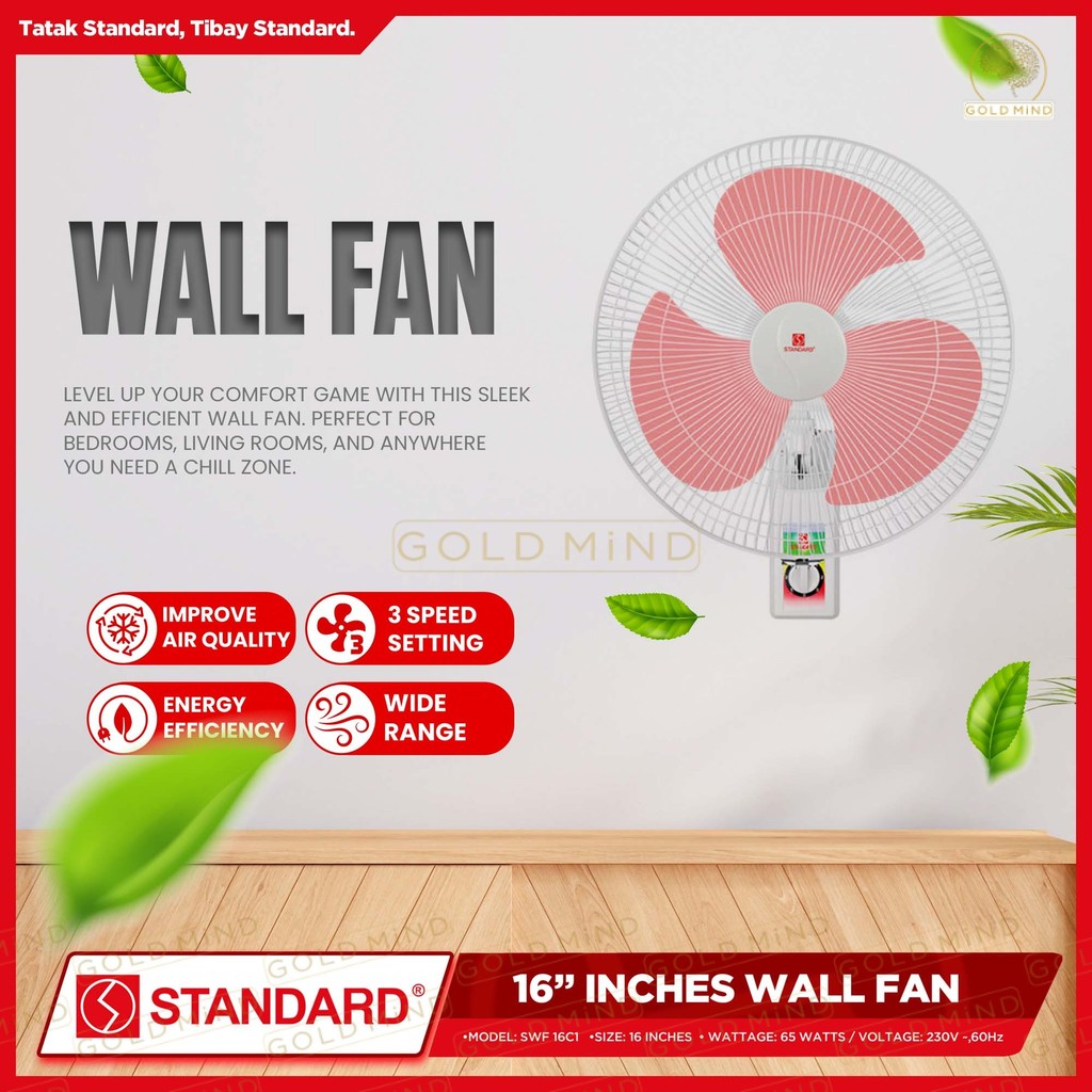 Standard Electric Fan Wall Fan 16 inches Banana Type Plastic Blade (65 Watts) - Gold Mind