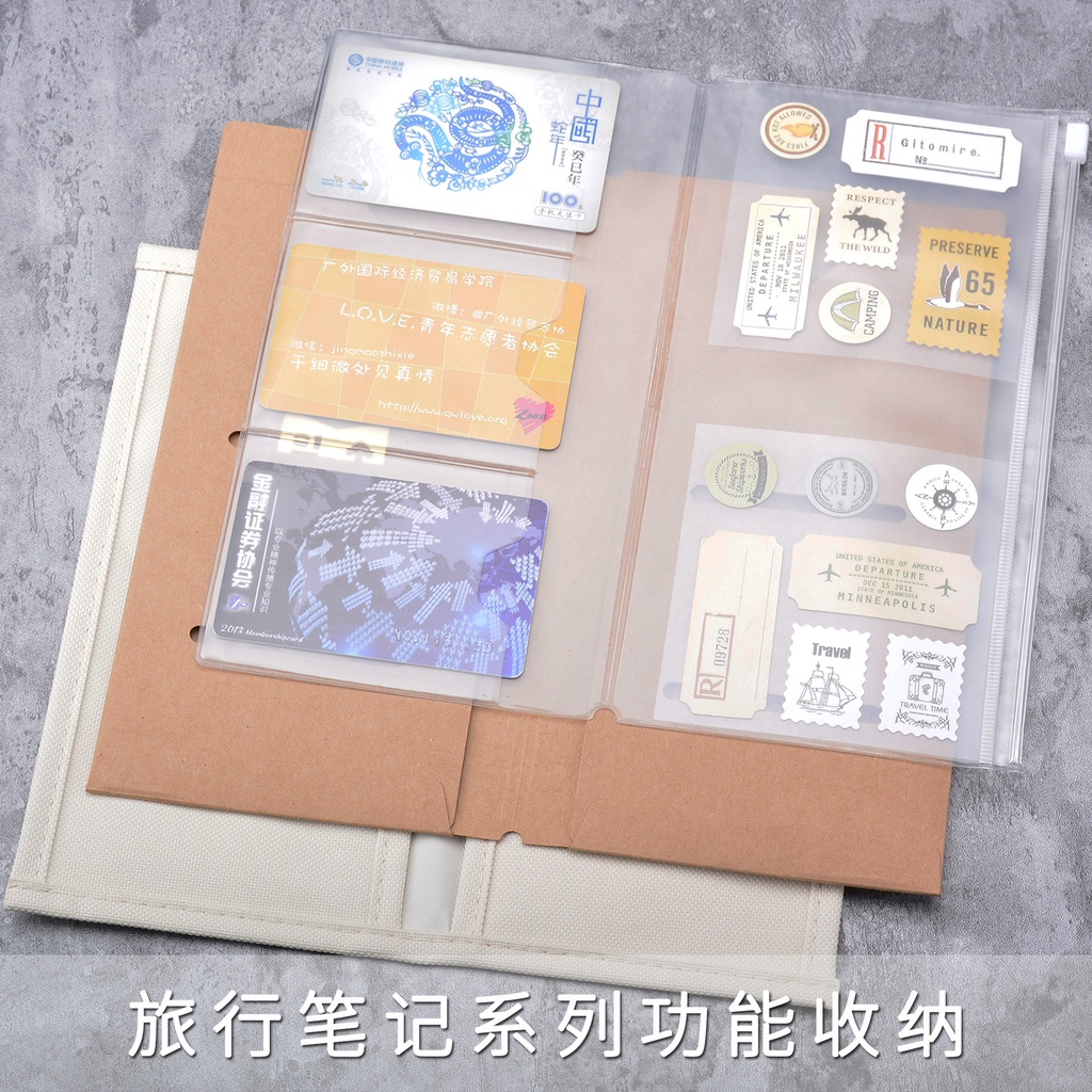 Standard PVC Buggy Bag TN Travrlrr's Notebook Inner Page Kraft Paper Storage Clip Oxford Cloth Storage Bag Buggy Bag Standard Replacement Inner Core Frosted Zipper High-End File Bag Stationery