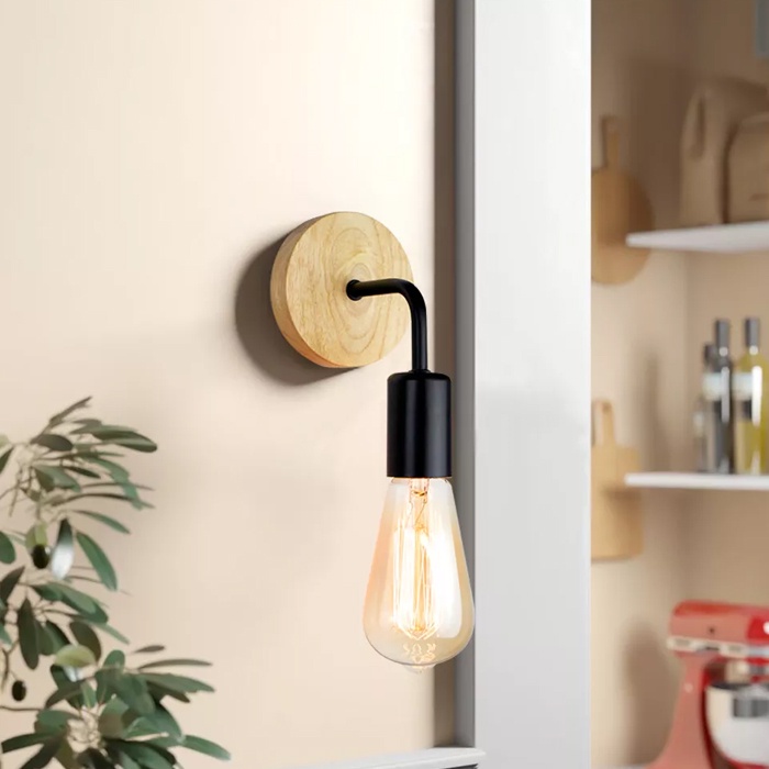 Standard Retro Black Wall Lamp Light Bulb Socket