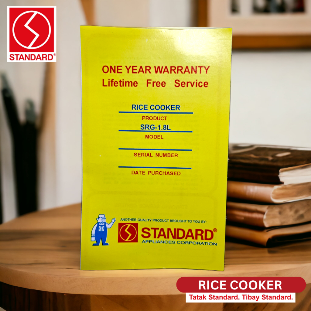 Standard Rice Cooker 10 Cups Heavy Duty w/ Glass Cover for 6 to 8 Person SRG 1.8L