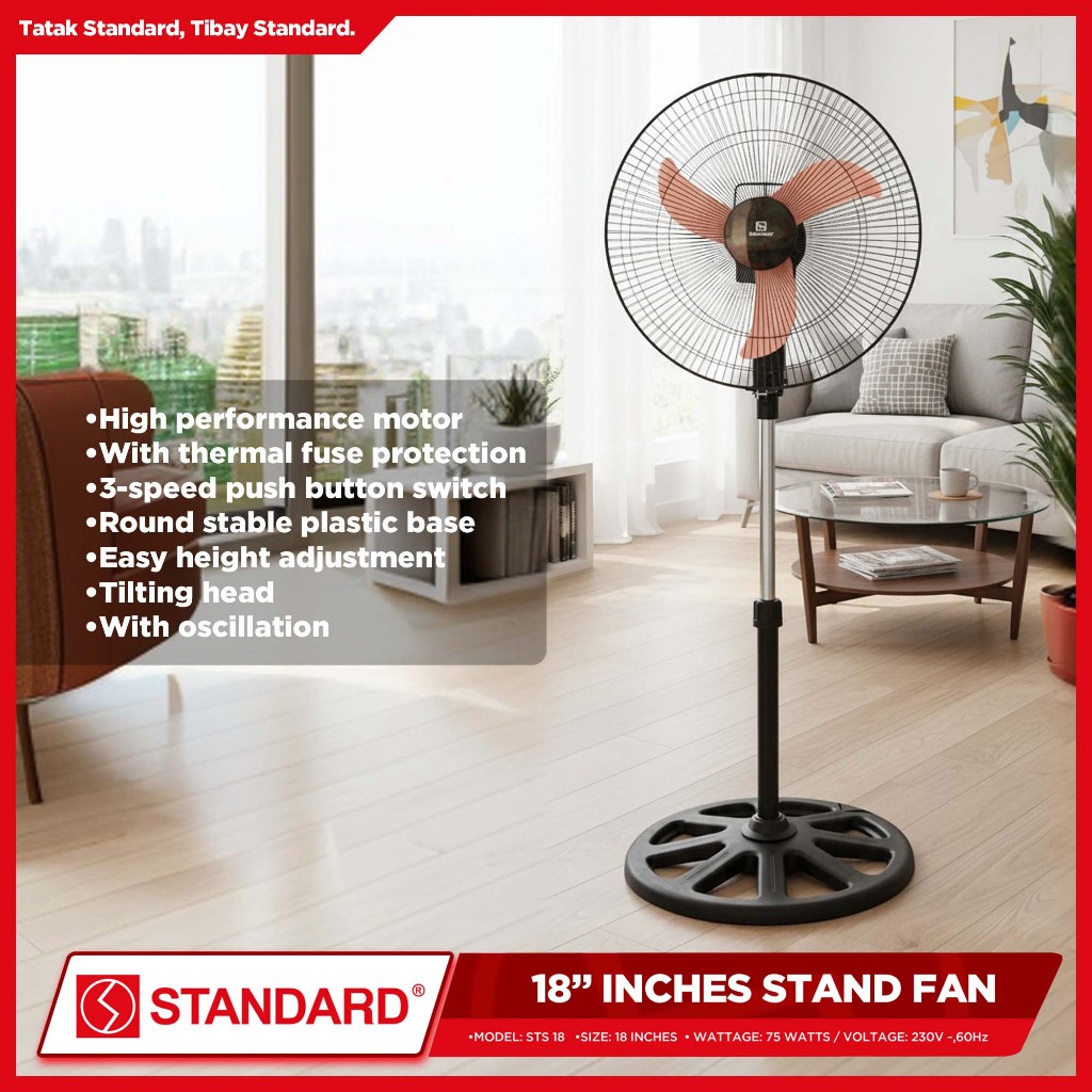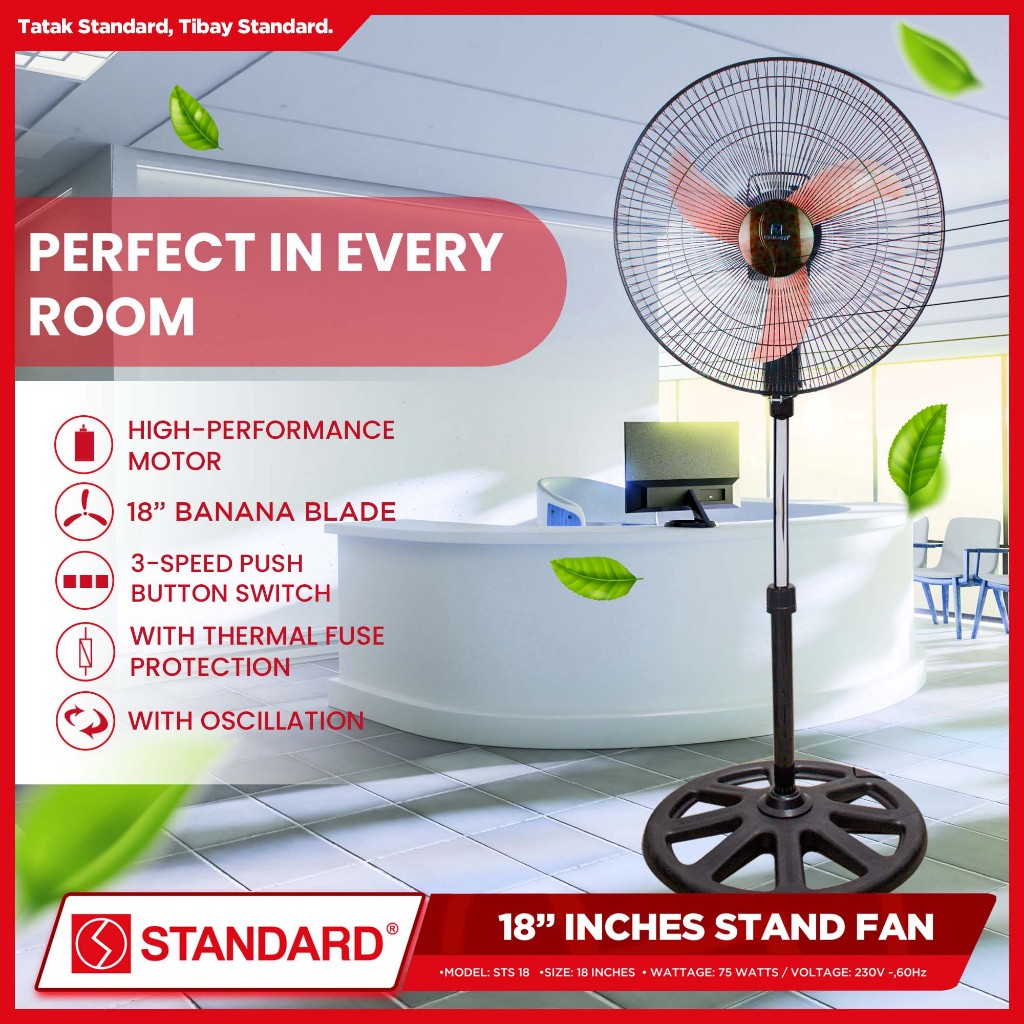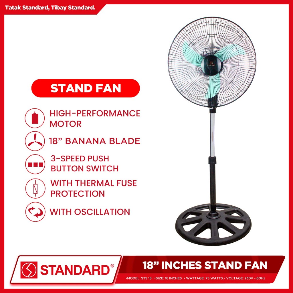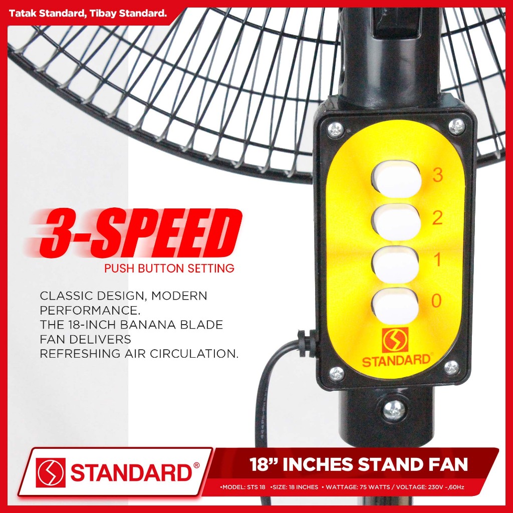 Standard Stand Fan 18" Banana Type Plastic Blade (Random Color) STS-18/SSM18B