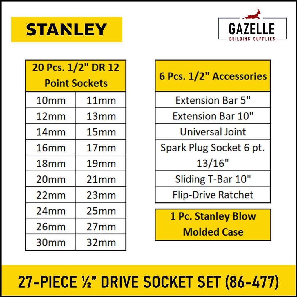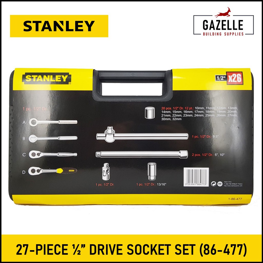 Stanley 27 Piece 1/2" Drive Socket Wrench Set Model No. 86-477 (10-32mm)