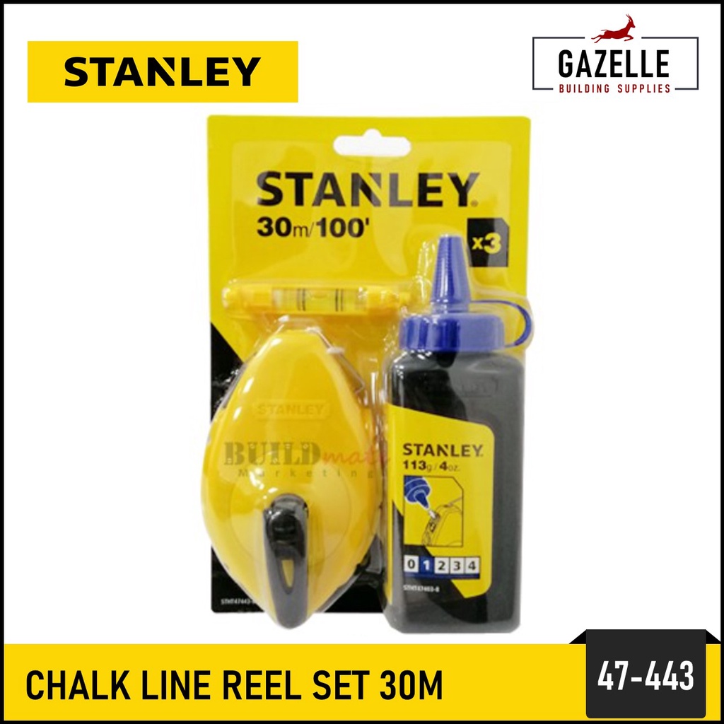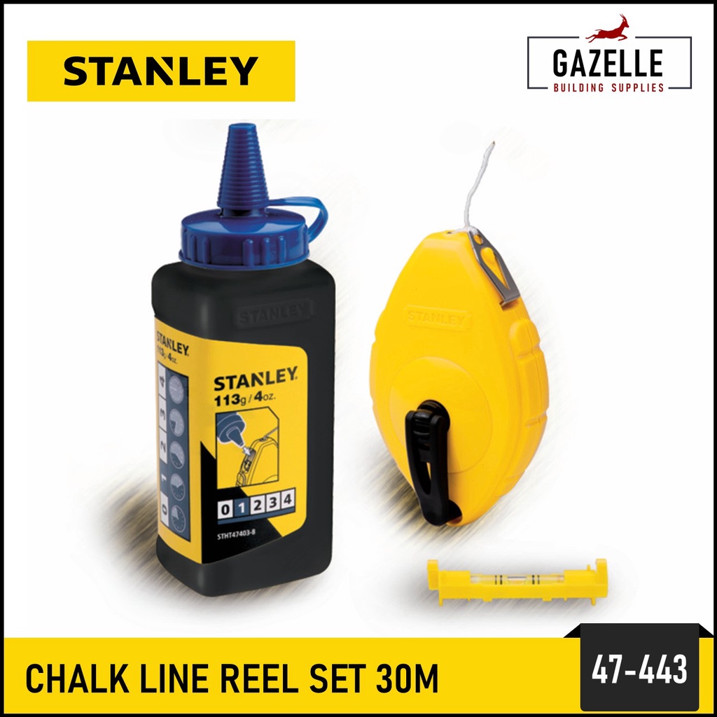 Stanley Chalk Line Set Reel Set 30m w/ Line Level & Blue Chalk 4oz - 47-443 / 47-803 Spare Chalk 8oz
