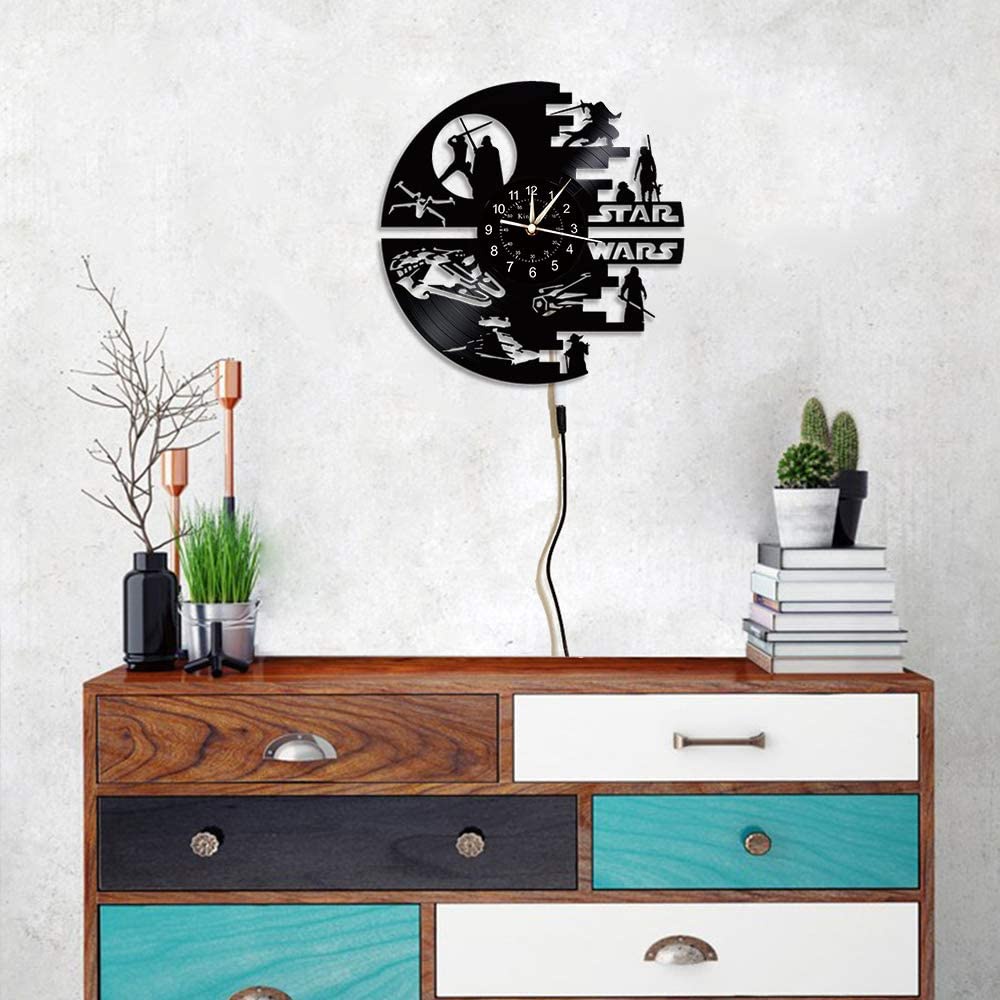 Star Wars Clock Vinyl Record Wall Clock Silent LED Wall Clock Home Art Decoration for Children and Friends Star Wars Gift Night Light 7 Colors Luminous Wall Clock