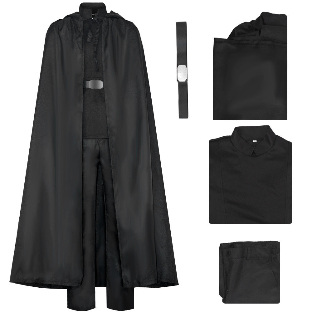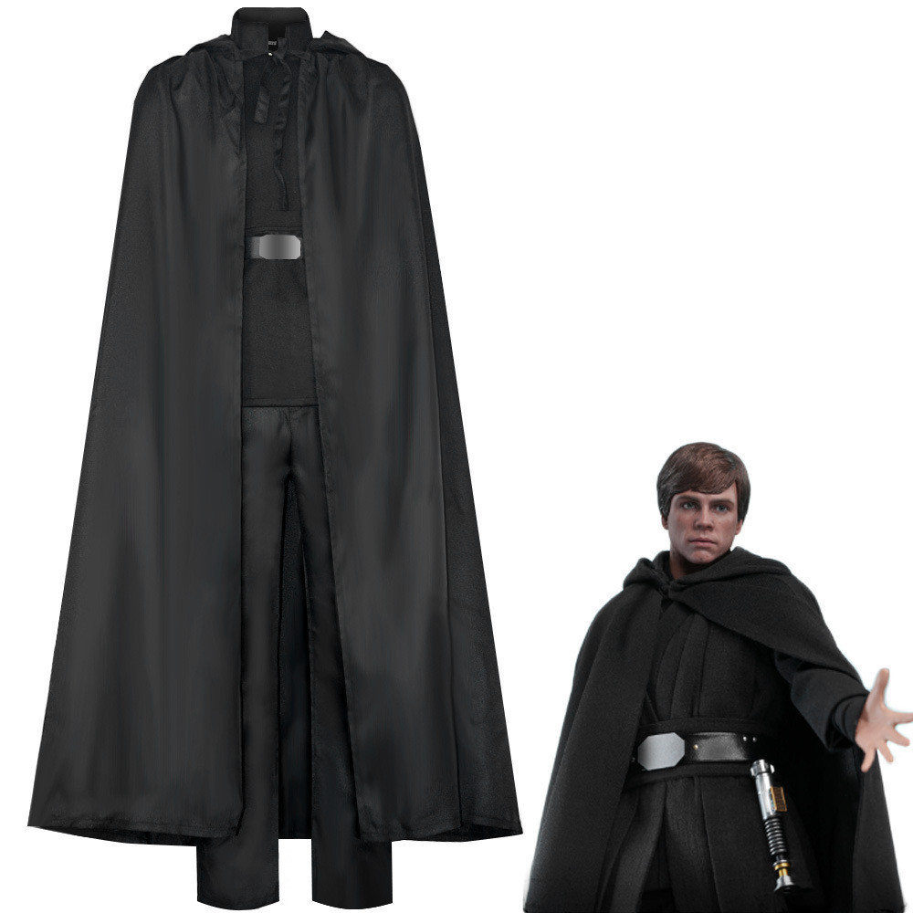 Star Wars/The Mandalorian Cosplay Costume For Males: Skywalker Luke Black Jedi Attire With Black Hooded Cloak