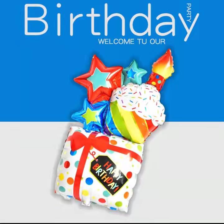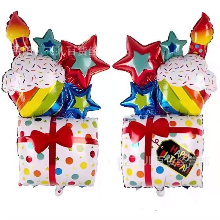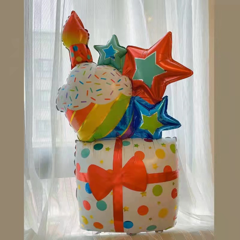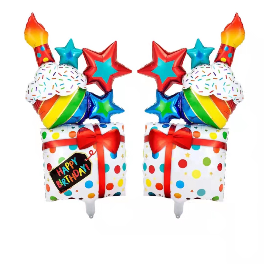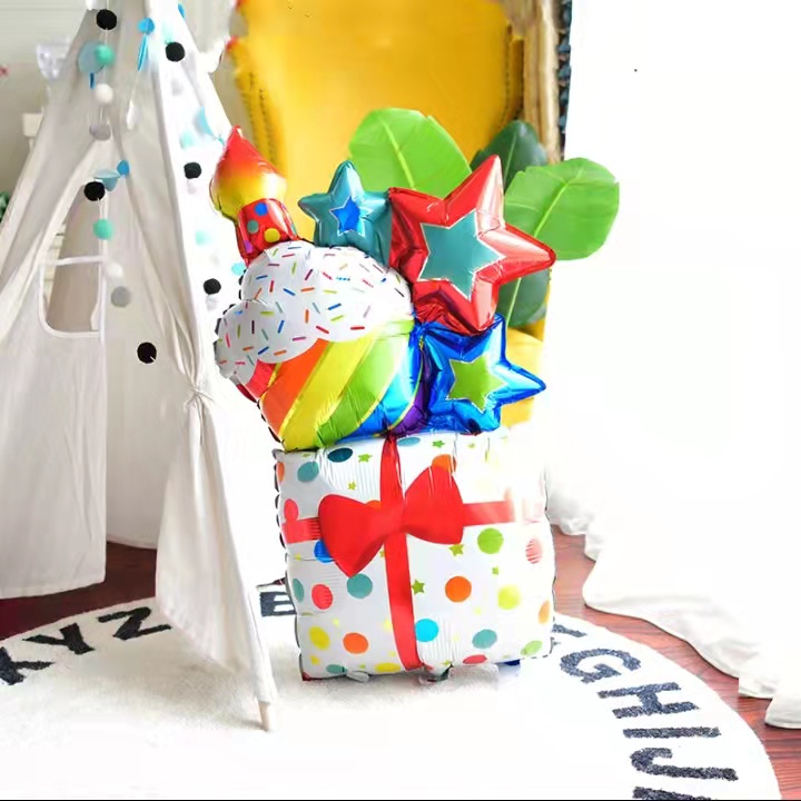 Star cake Gift box shape 43 inch INS style Happy birthday party decorations aluminum foil balloon