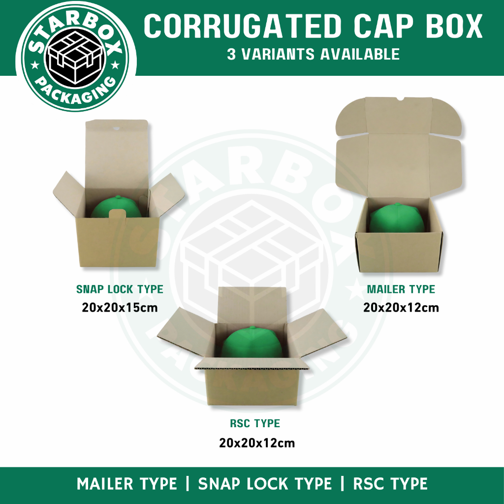 Starbox "T9" Corrugated Mailer Type Cap Box Carton Box Shipping Box for Cap etc. (20x20x12cm)