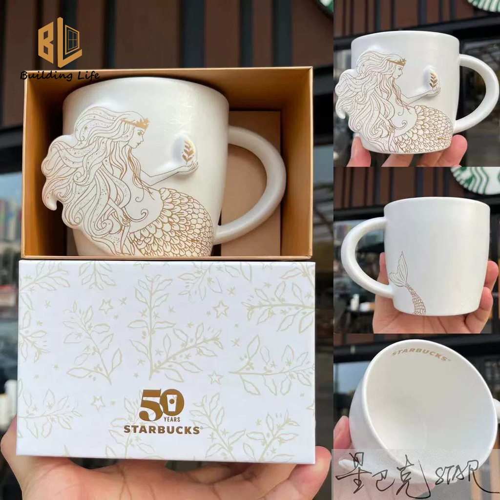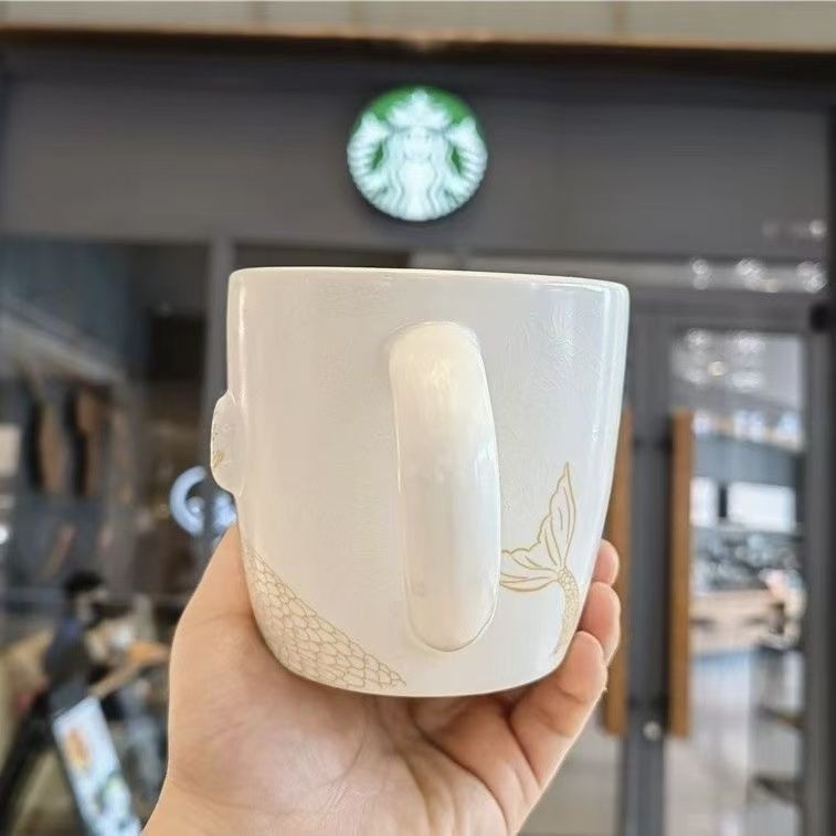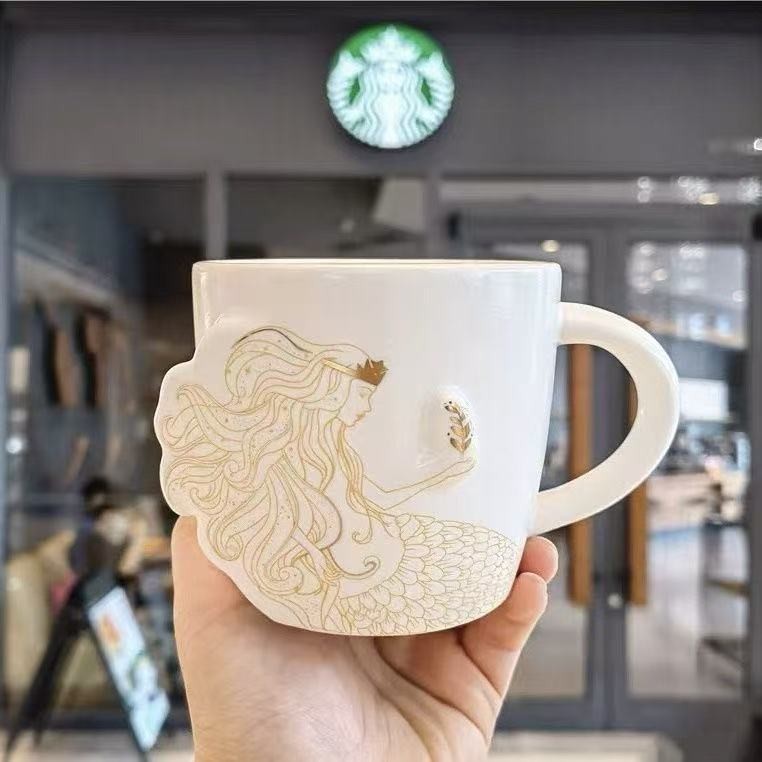 Starbucks Cup Ceramic Mermaid Design Household Mug Embossed Three-dimensional Milk Coffee Coffee Cup Office Cup Water Cup 355ml